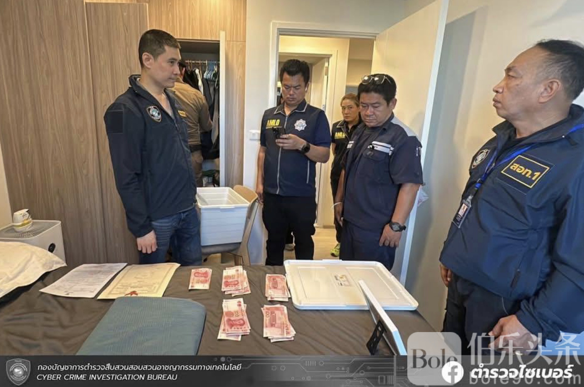 2025年12月25日,警方调集数十名警力,同时突袭曼谷四处重点目标,包括高档公寓和豪华住宅区,查封资产涵盖不动产、美元及人民币现金、名牌包、豪车、名表、电子设备及大量关键文件,合计约1.8亿泰铢。进一步调查显示,该犯罪网络与跨国电诈集团、非法网络赌博平台高度勾连,年资金流动规模高达300亿泰铢以上。多名核心涉案人员已获逮捕令,警方正持续扩大调查范围。