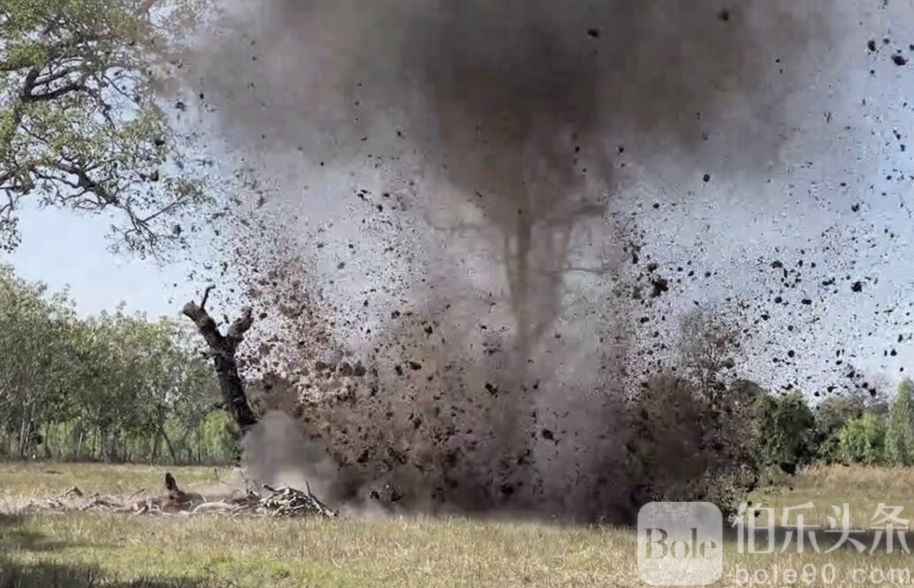 伯乐头条专讯:12月30日,泰国东北部四沙府甘特拉克区,村民在橡胶园中发现一枚未爆的加农炮炮弹,随即报告村长并通知第22边防警察营。警方迅速到场将炮弹转移至开阔地带并成功引爆销毁,以防园区损毁及居民受伤。