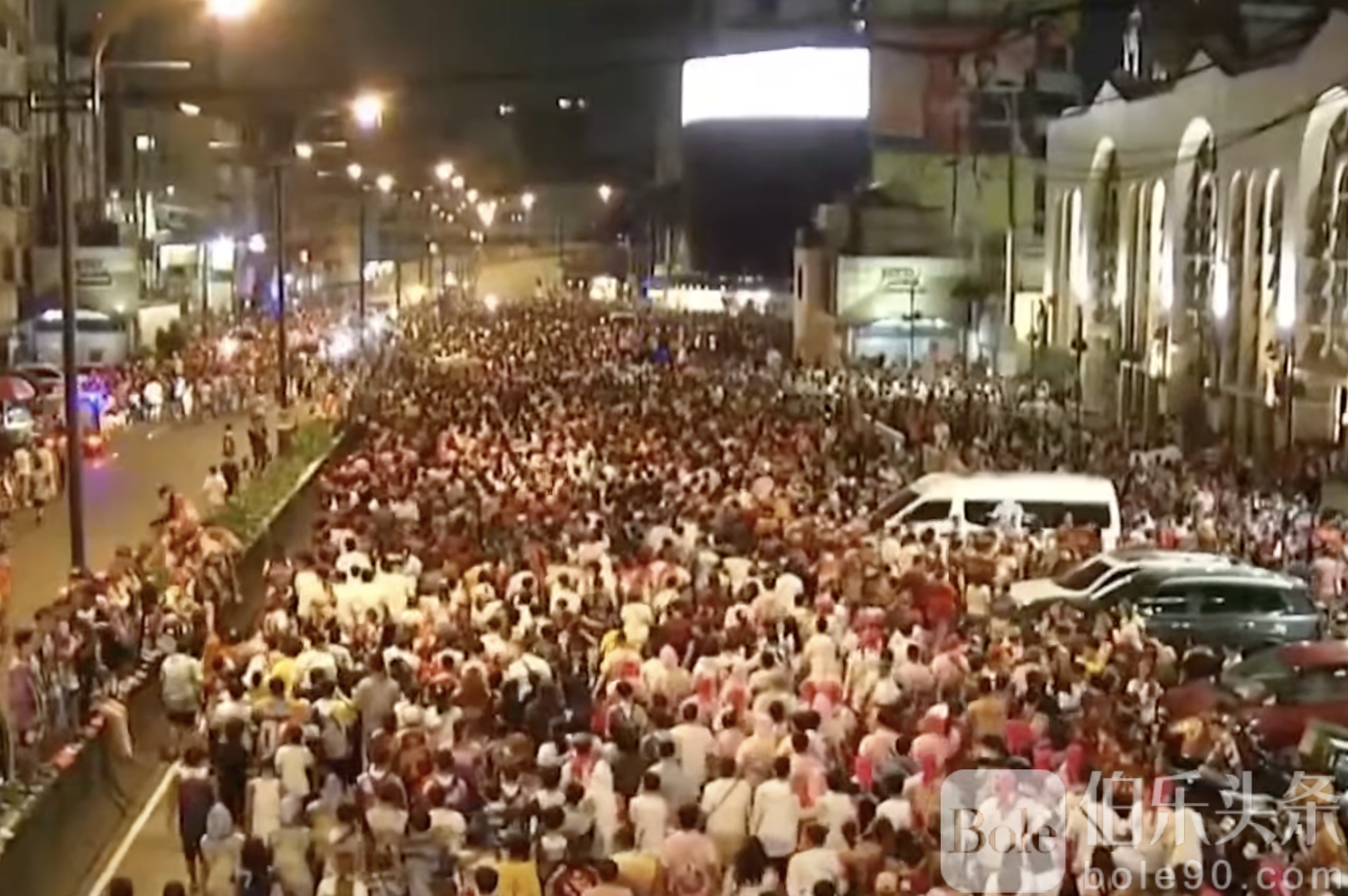 伯乐头条专讯:菲律宾马尼拉奎阿波(Quiapo)在12月31日凌晨的Poong Jesus Nazareno感恩巡游期间,发生一起交通意外,一名13岁男孩在过街中心岛观看圣像游行时,被一辆出租车hit-and-run撞伤。