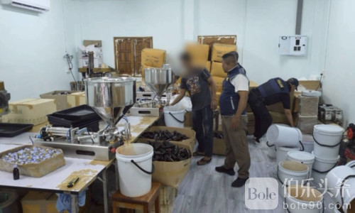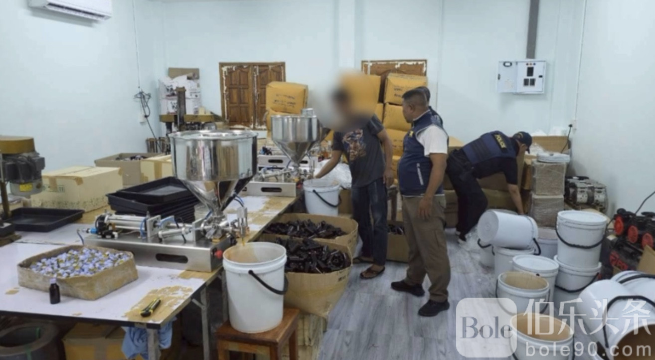 伯乐头条专讯:泰国南大叻府近期爆出重大案件,警方联合当地卫生部门成功捣毁一个大型假止咳药生产网络,涉案药品及原料、设备总价值超过2,000万泰铢。此次行动共查获假止咳药约77,000瓶,包括多个品牌,如DATISSIN、DIPHENYL、IWADIL等,同时缴获生产设备、空瓶、标签及原料储存桶等。