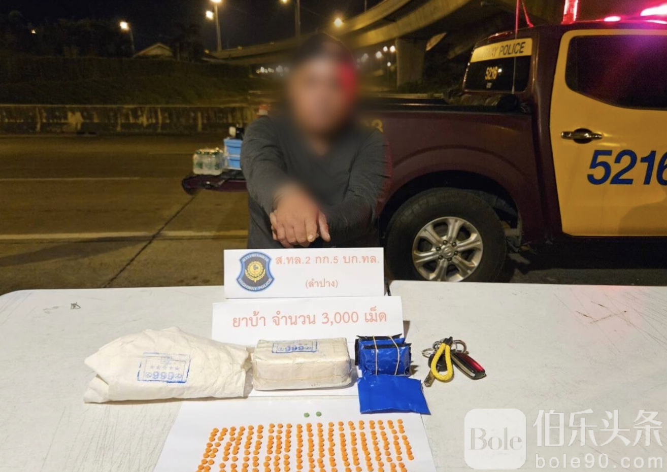 伯乐头条专讯:2026年1月3日,泰国兰拍府警方在北部高速公路年节查点时,成功抓获一名涉嫌贩卖冰毒的48岁男子,现场查获冰毒约3000颗。经调查,嫌犯承认这些毒品是他新近购买,准备在当地转售,并在车辆内自吸数颗。