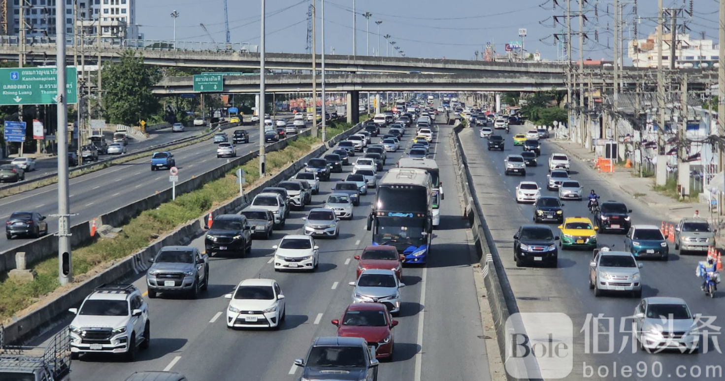伯乐头条专讯:新年长假结束,民众纷纷返回曼谷,导致曼谷通往市区的主干道——巴吞旺路(Phaholyothin Road)车流大幅增加。记者4日下午3时实地探访发现,从大城府交界至通往多能通行高架路(Don Mueang Tollway)前的铸币厂段,主路与部分辅路车辆已几乎占满,车流呈间歇性缓行状态,高架路入口更因车辆汇入而出现明显减速。
