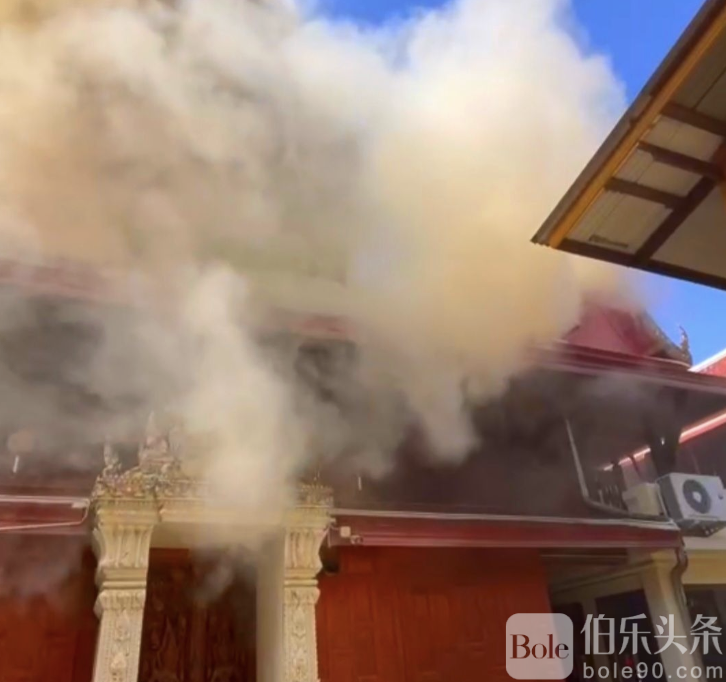 伯乐头条专讯:泰国佩差府著名寺庙——大佛寺(Wat Mahathat Worawihan)1月6日凌晨再度发生僧舍火灾,浓黑浓烟直冲天空,现场情况一度十分紧张。此次火灾发生在先前刚刚发生火灾的僧舍旁,短时间内引发民众关注与担忧。