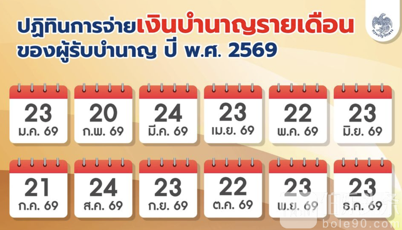 伯乐头条专讯:泰国财政部会计总处近日公布2026年公职人员及军人薪资、养老金发放日历,明确全年的发薪安排,以便相关人员合理安排财务。