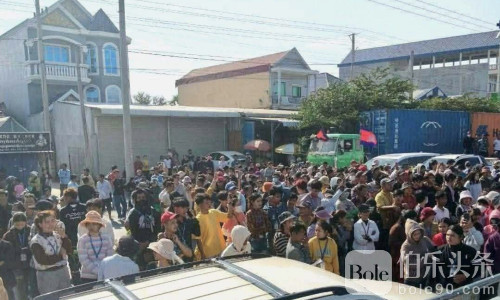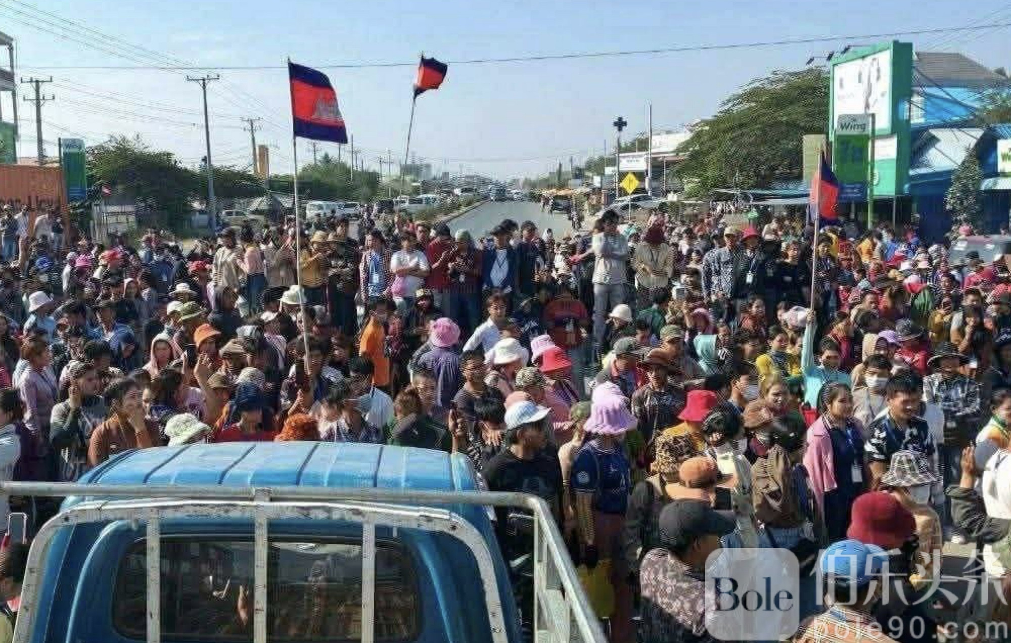 伯乐头条专讯:柬埔寨磅实居省贡比西县7日上午突发大规模劳资纠纷。一家名为“YJC”的制鞋厂内,约2300名工人集体停工抗议,并一度封堵3号公路,导致当地交通受阻数小时,现场气氛一度紧张。