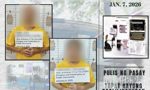伯乐头条专讯:菲律宾帕赛市警方日前展开诱捕行动,成功捣毁一处涉嫌非法提供公证服务的摊点,当场逮捕两名嫌疑人,并起获多件用于伪造公证文件的工具。