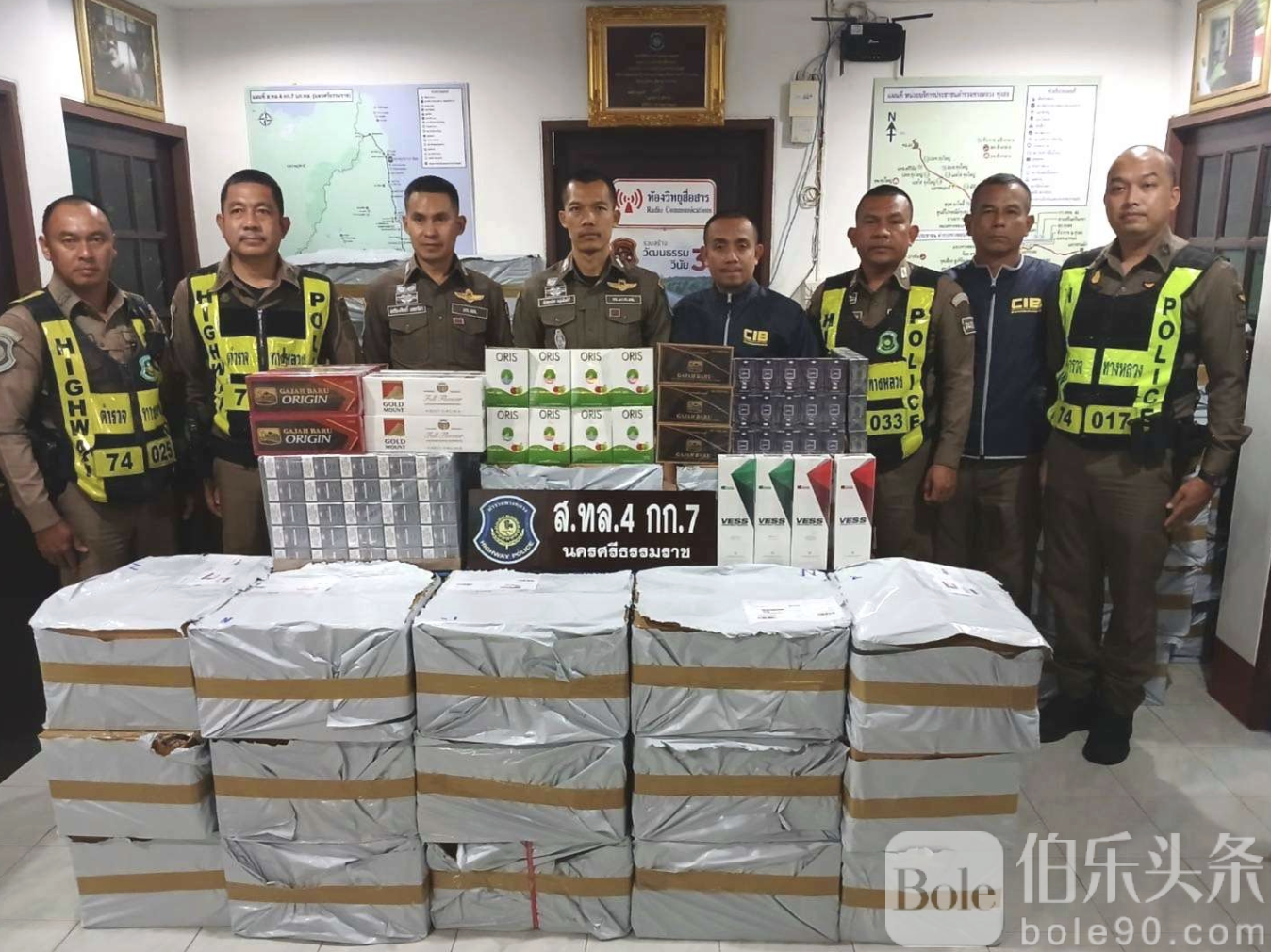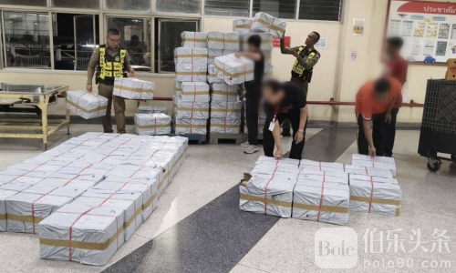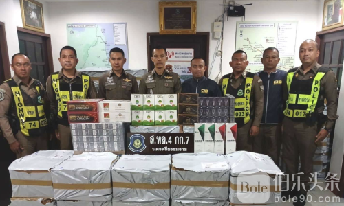 伯乐头条专讯:泰国中央调查警察局在南部高速公路成功截获一起重大走私香烟案件,当场查扣走私香烟超过40万支,涉及货车82箱,原计划分发至整个泰国南部地区。警方正在全力追查背后操控团伙。