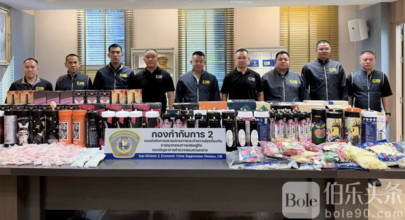 伯乐头条专讯:泰国中央调查警察局(CIB)近日展开行动,重拳打击曼谷市中心非法笑气交易。行动中,警方分别在章街区(Chan)和因他玛拉区(Inthamara)两处重点地点查获非法笑气共204罐,总价值超过40万泰铢,并抓获两名嫌疑人,切断笑气流向青少年和娱乐场所的渠道。