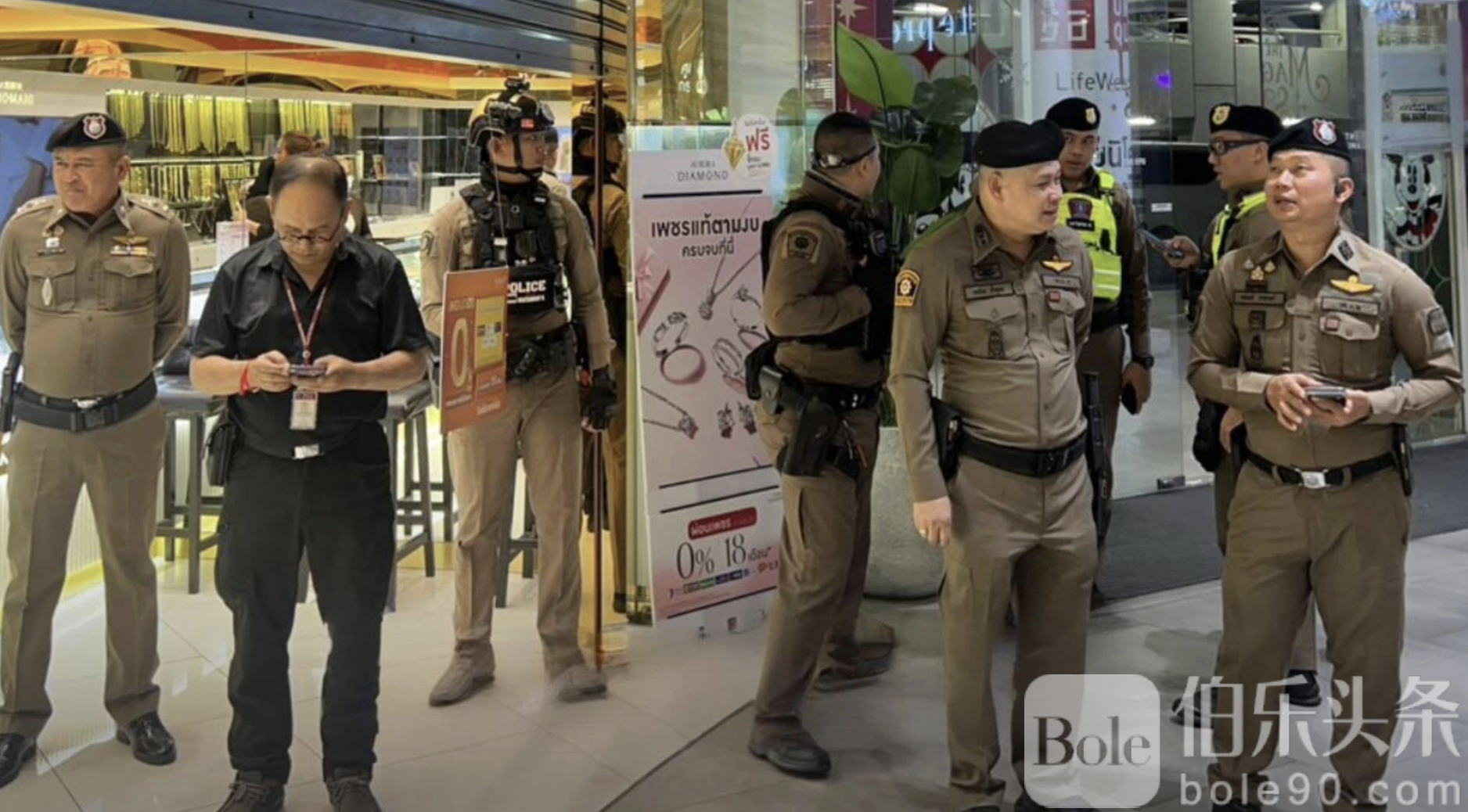 伯乐头条专讯:泰国曼谷一大型商场内近日发生一起金店抢劫案,嫌犯假装选购黄金,趁店员疏忽抢走多件金饰,全程仅用约两分钟,随后骑摩托车迅速逃离现场,目前仍在逃,警方正全力追缉。
