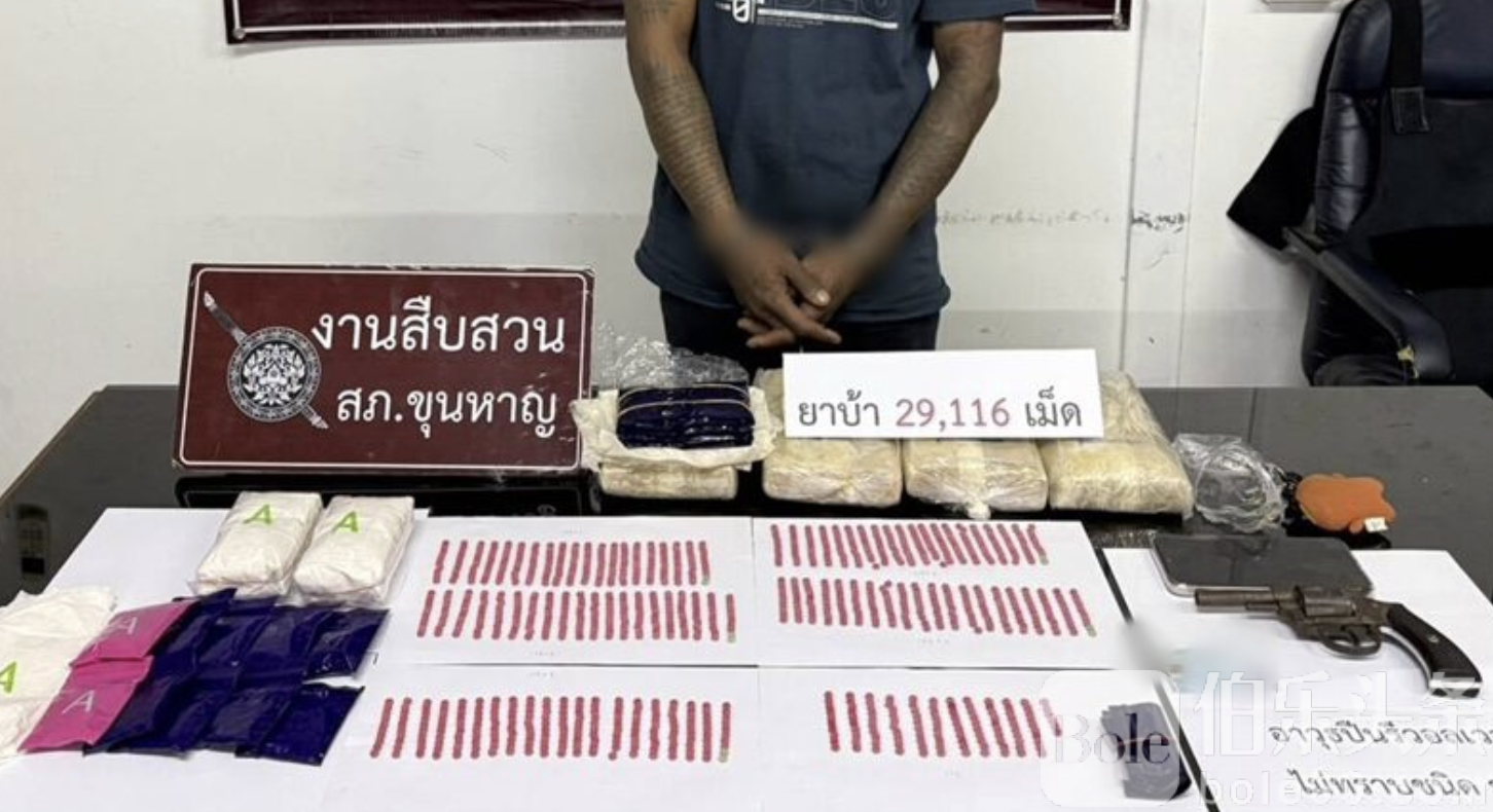 伯乐头条专讯:泰国东北部斯里沙哥府昆汉县警方1月14日展开雷霆行动,突袭一处毒品窝点,抓获3名毒贩,缴获冰毒超过3万颗,并查获1把手枪。警方重申:“毒贩没有安全地带”,并呼吁民众积极举报毒品线索。