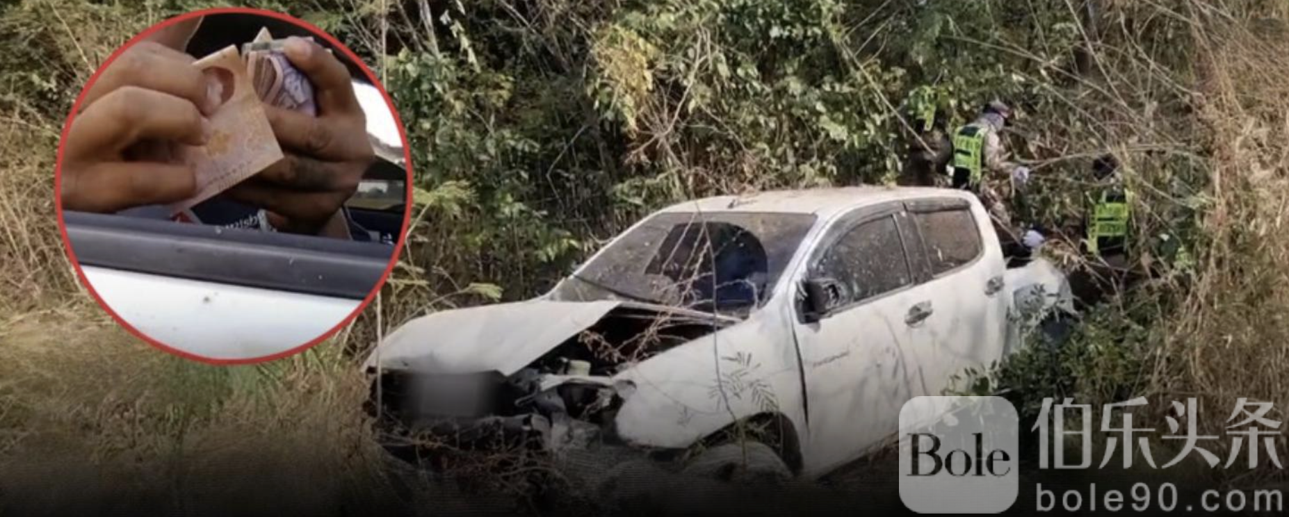 伯乐头条专讯:泰国拉差武里府发生惊险毒品追捕事件,一名49岁男子贿赂警察后驾车试图逃逸,最终在道路弯道失控翻入沟渠,车内查获冰毒共7997颗。