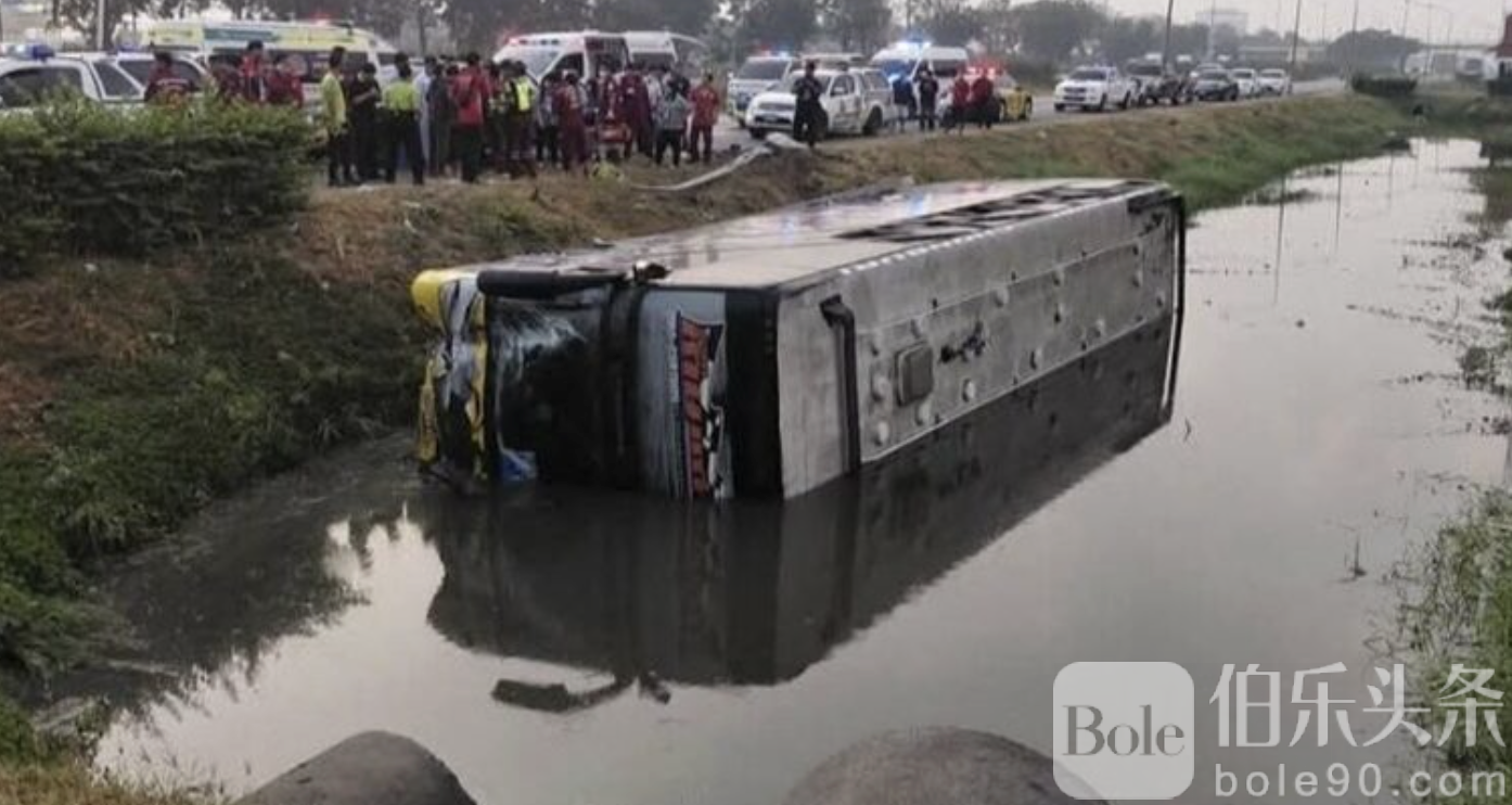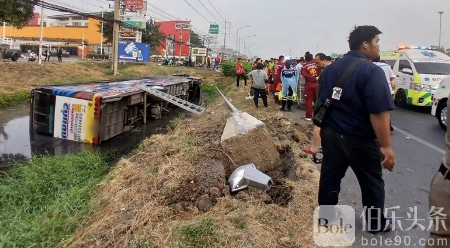 伯乐头条专讯:1月18日早晨,泰国亚逸他育府(Ayutthaya)邦帕因区(Bang Pa-In)发生一起员工班车失控事故,14名工厂员工受轻伤,所幸无人死亡。