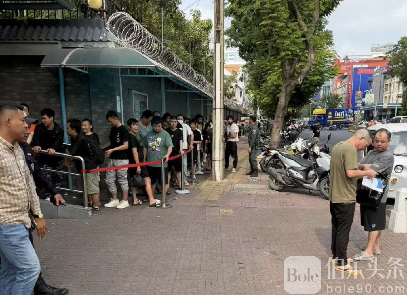 伯乐头条专讯:2026年1月19日,柬埔寨首都金边中国驻大使馆门前依然排起长龙,大量来自西港、木牌、财通、马德望等电诈园区的人员(俗称“狗推”)等待办理回国证件。现场目击者表示,排队人数太多,队伍几乎叠成两层。