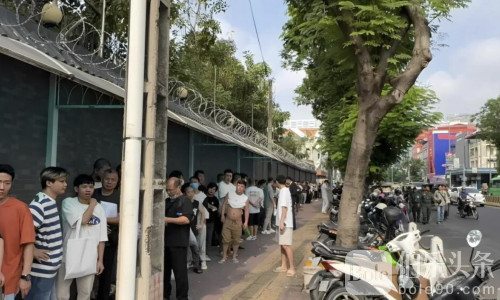 近两天,多国驻柬使馆前排起长队。逃回金边的人们从西港、贡布、柴帧等数百公里外赶来,面容疲惫、沉默不语。由于护照仍被园区扣押,他们只能先办理临时手续回国。机票价格随之水涨船高:金边飞广州的隔天机票约4000元,而平时仅需1000元,涨幅高达四倍。