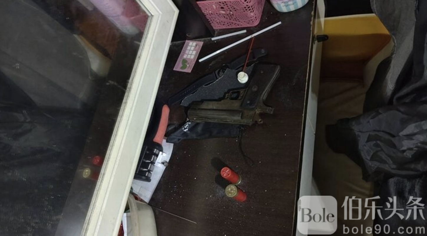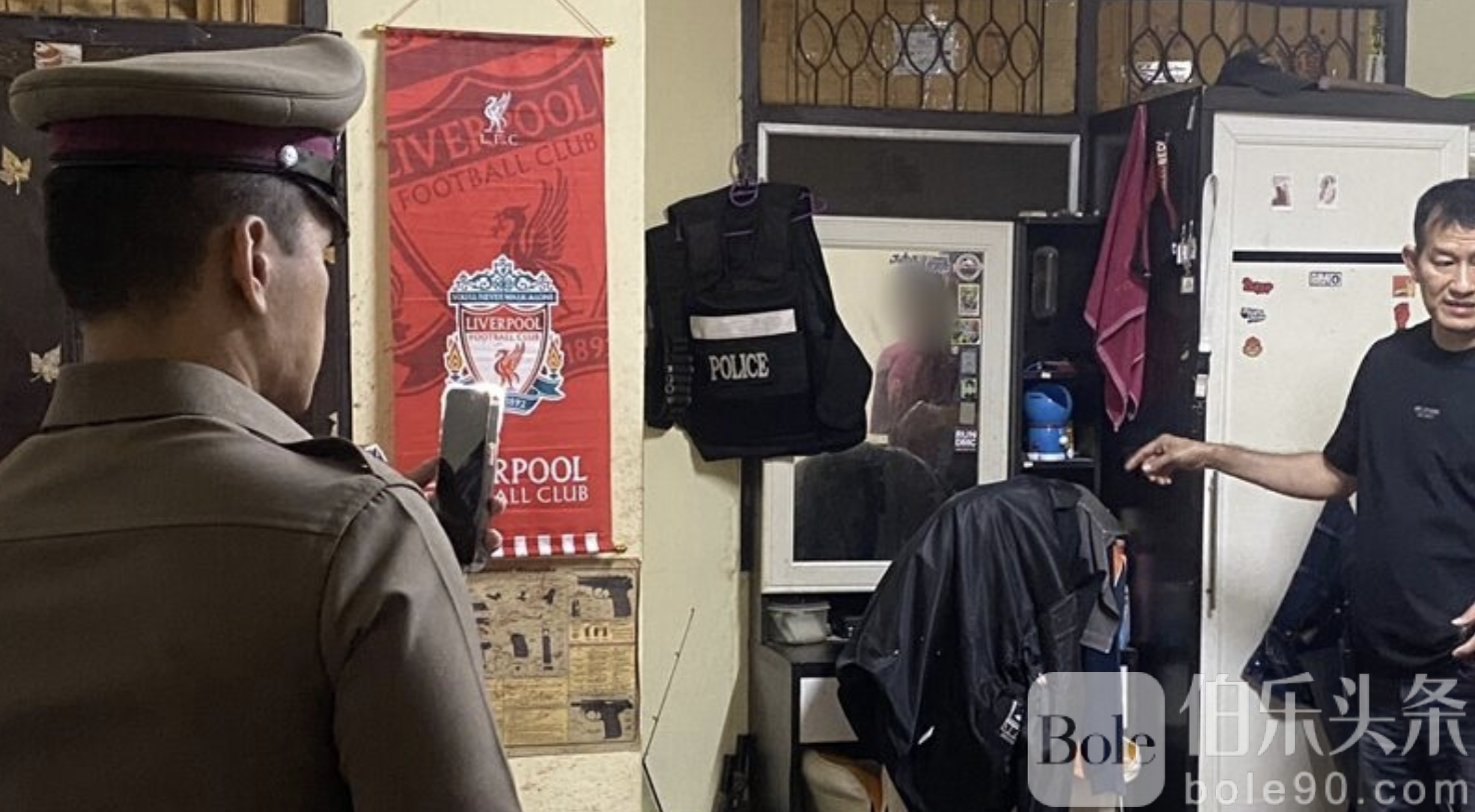 进一步勘查发现,房内抽屉及玻璃桌上放有两把泰制手枪、若干子弹,以及一件防弹背心。警方已将相关物品全部扣押,作为后续调查证据。