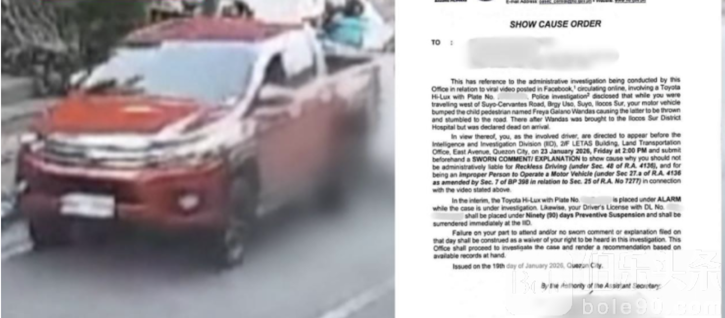 伯乐头条专讯:菲律宾伊洛戈斯南省近日发生一起令人心痛的交通事故,一名年仅7岁的女童在下车后横过马路时,遭一辆皮卡车撞倒并碾压,当场重伤,送医后不治身亡。事件曝光后引发社会强烈关注,菲律宾陆路交通办公室已正式传唤涉事司机,启动调查程序。
