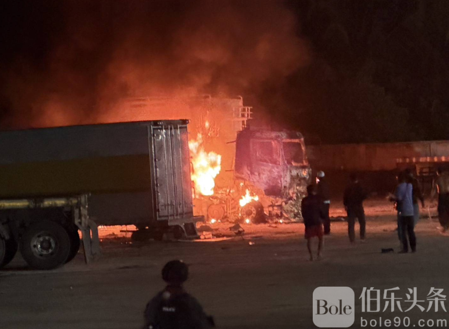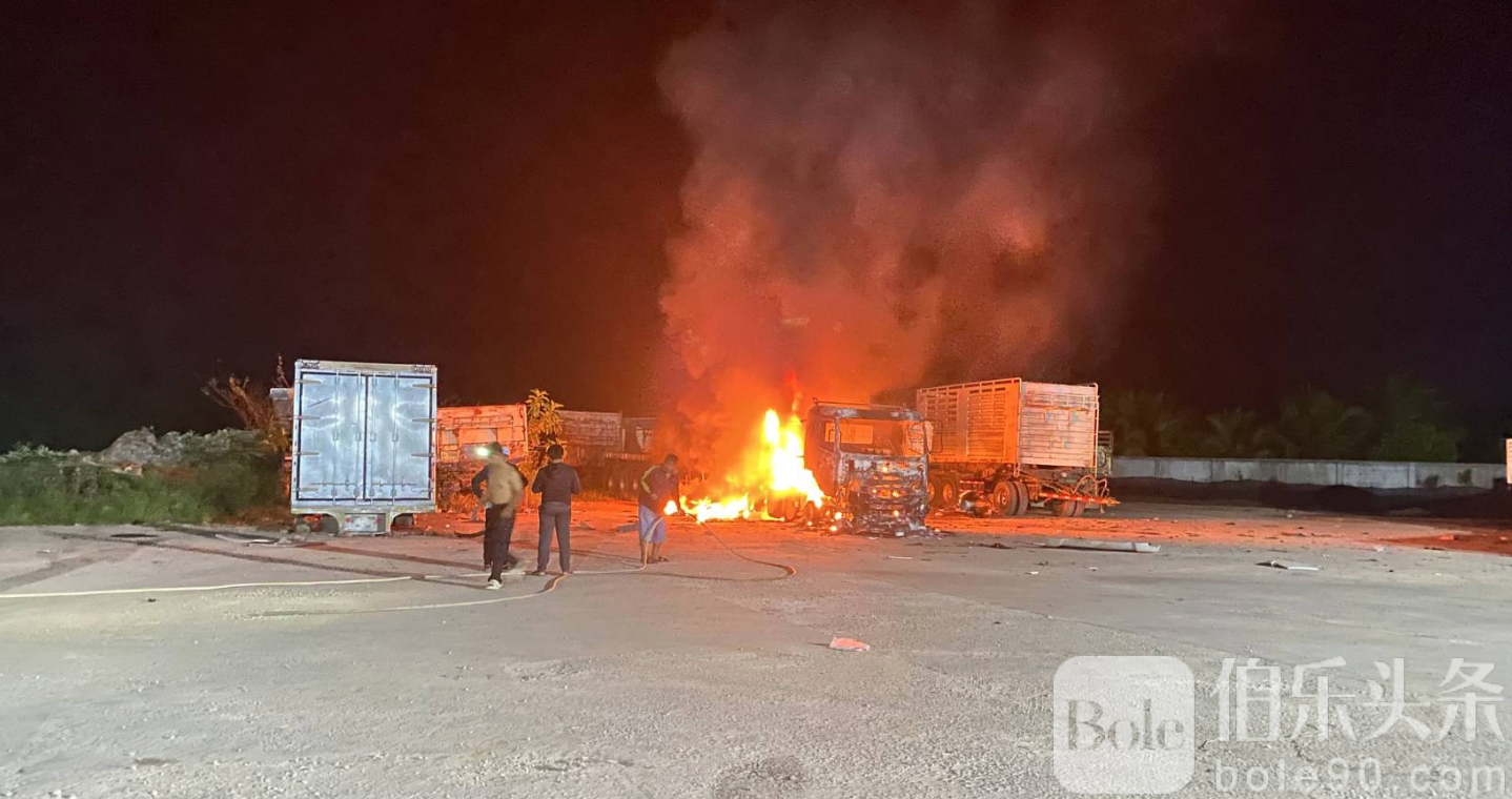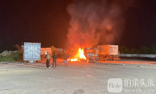 伯乐头条专讯:泰国南部奈拉差府(Narathiwat)苏海哥洛克县(Sungai Kolok)近日发生严重纵火爆炸事件,一处涉及非法私油交易的仓库停车场凌晨遭人爆炸纵火,两辆挂车被烧毁,所幸无人伤亡。