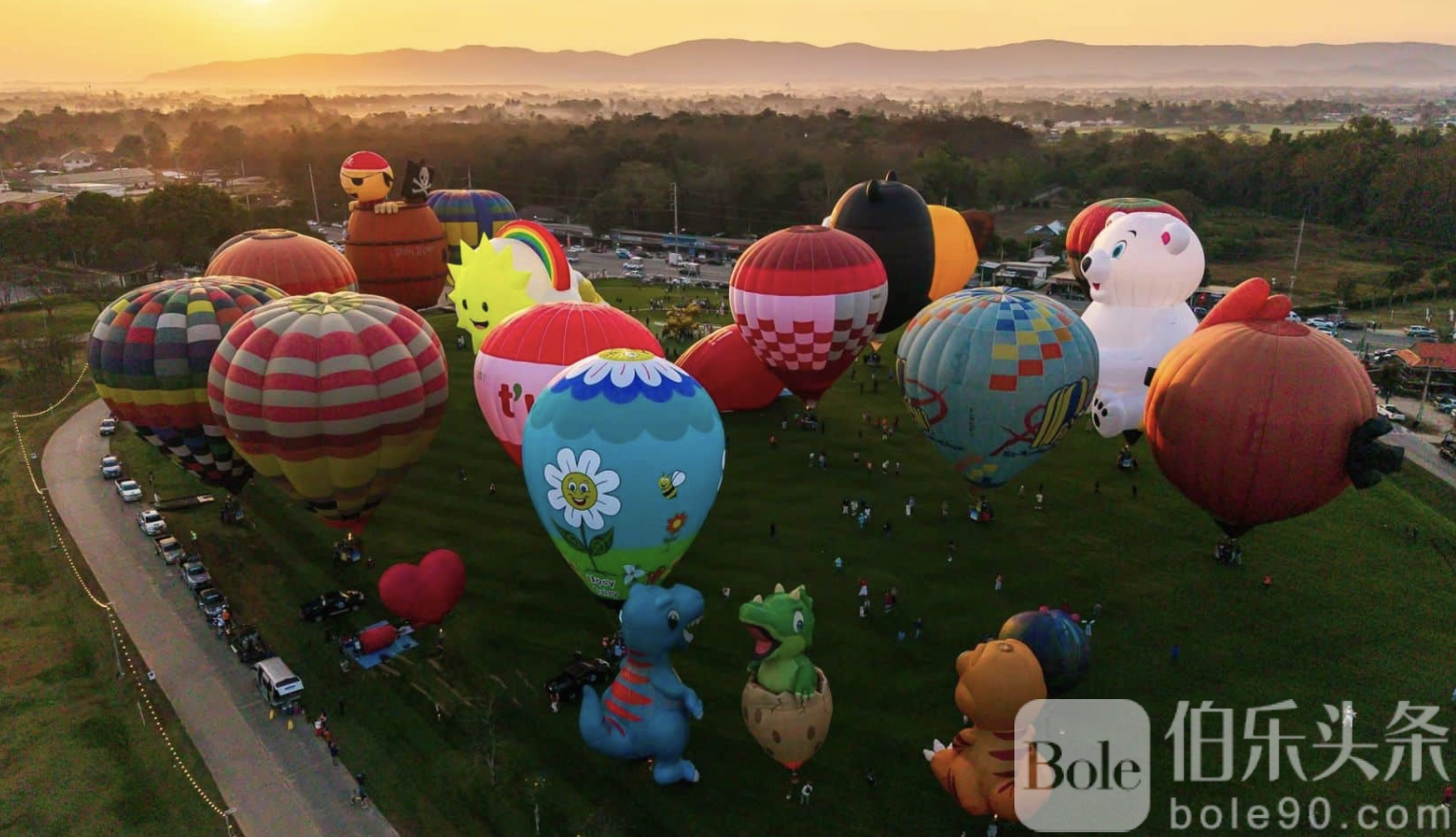 伯乐头条专讯:泰国清莱府知名旅游地标“清莱狮子公园”即将迎来年度最盛大的浪漫盛典——第十届“清莱狮子公园国际热气球嘉年华二零二六”,活动将于2月11日至15日举行,届时将有来自全球13个国家的30多只热气球齐聚清莱上空,把整座城市装点成东盟最浪漫的天空舞台。