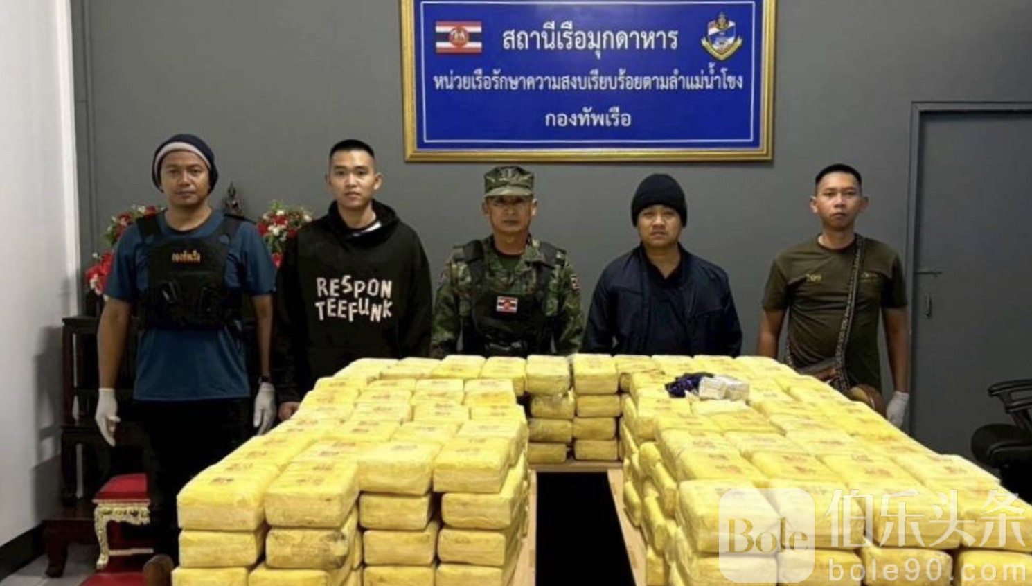 伯乐头条专讯:泰国边境守卫部队(Nong Khai River Patrol, นรข.)在湄公河沿岸再次上演惊险抓捕行动。1月29日深夜,驻泰国北那空府(Nakhon Phanom)辖区的巡逻队在穆达汉府(Mukdahan)Wan Yai县坡孔村(Ban Pong Kham)附近,成功截获跨国贩毒团伙运输的7袋冰毒,总计约2,800,000颗,同时查获一艘装有引擎的小船。