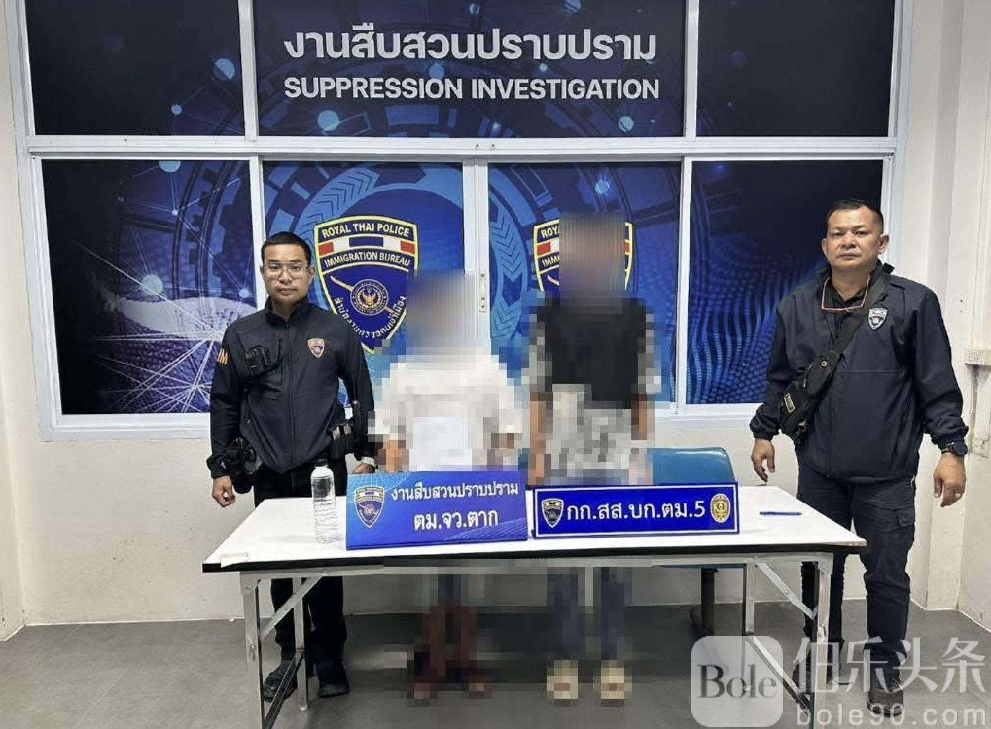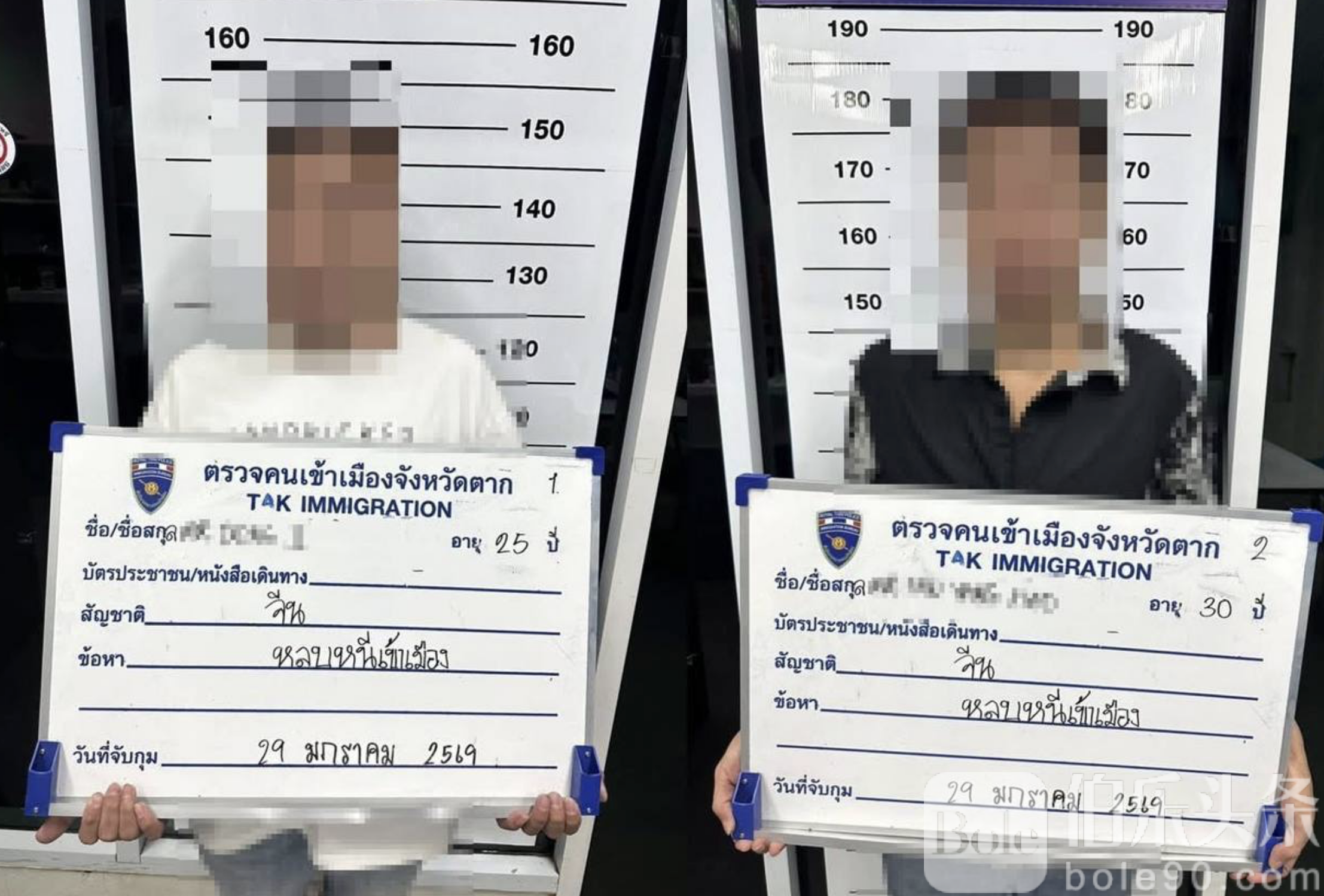 伯乐头条专讯:1月29日晚,泰国达府移民局在湄索县客运站附近查获两名无有效护照的中国籍人员,涉嫌非法入境泰国,已被移送至当地警局依法处理。
