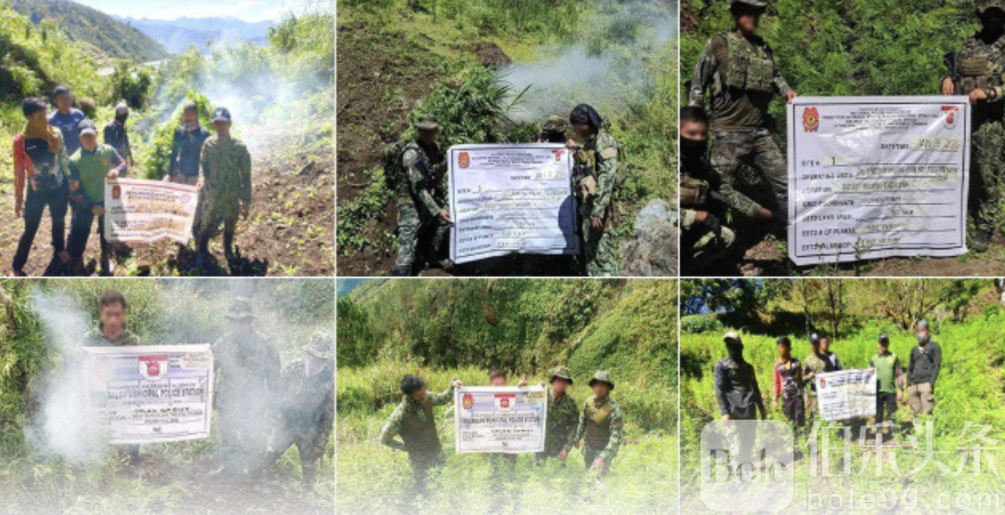 Bole新闻专讯:菲律宾警方近日在北部高山省份本格特展开大规模肃毒行动,在基邦岸镇深山丛林中一举捣毁6处大麻种植园,当场焚毁价值高达927万比索的成熟大麻与干燥大麻叶,重创当地毒品供应链。