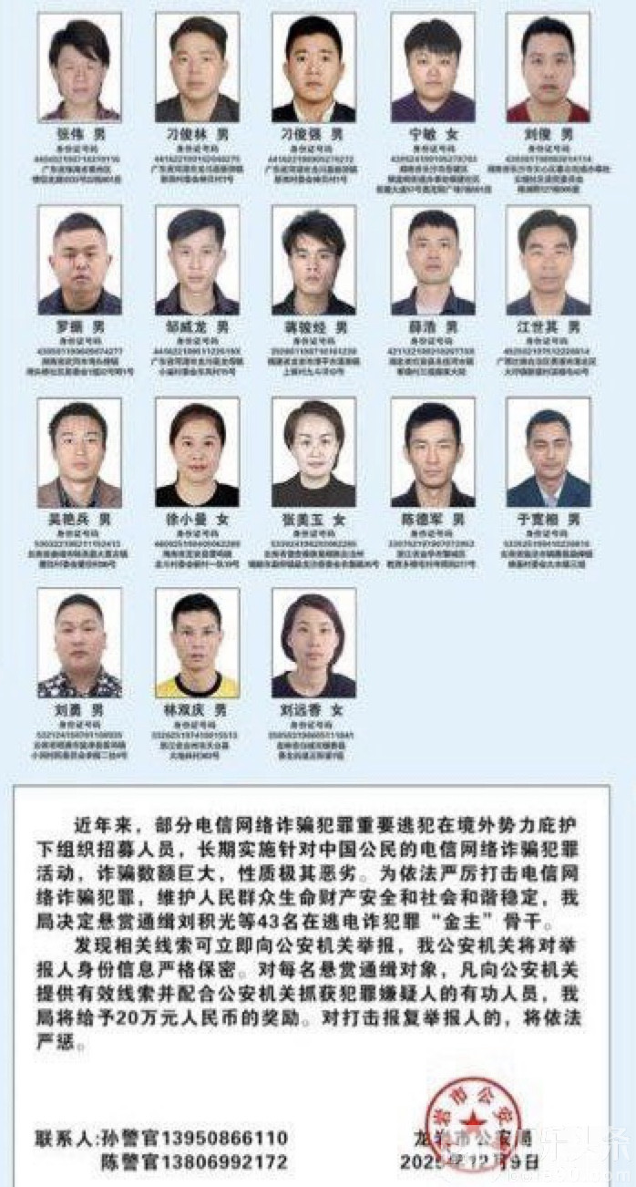 为加大抓捕力度,各地公安机关决定对这些在逃人员悬赏20万元人民币,并呼吁社会公众积极提供线索。公安部门承诺,对举报人信息严格保密,同时强调任何打击报复举报人的行为将依法受到严惩,确保线索提供者的安全与权益。