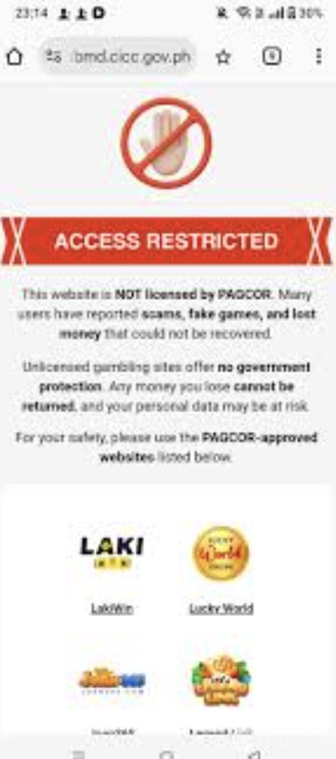其次,DITO 拦截页面的“官方阵容”过于完整。PAGCOR、国家电信委员会(NTC)、网络犯罪调查与协调中心(CICC)的标志同时出现,让不少用户产生一种错觉:这并非单一运营商的技术选择,而像是某种被默许、甚至被协调过的统一口径。