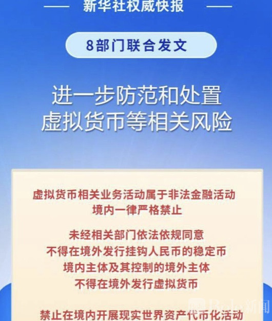 Bole新闻专讯:中国人民银行及其他八家监管机构今日联合发布通知,明确表态:虚拟货币相关业务在中国境内属于非法金融活动,坚决禁止任何人以任何形式开展。更进一步,未经审批,境内外任何单位和个人都不得在境外发行挂钩人民币的稳定币,境内主体及其控制的境外主体同样被禁止在境外发行虚拟货币。