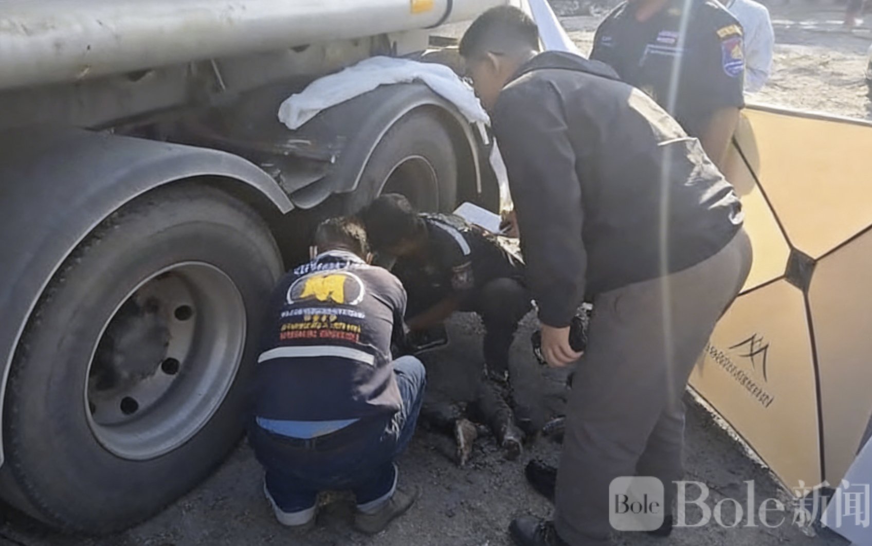 Bole新闻专讯:2月10日早晨,泰国春武里府斯拉差区一名52岁男子在检查油罐车时,不幸被车辆碾压身亡。事故发生在当地宁康瓦—怀空代3巷的一处住宅内,当地救援中心接报后立即派出救护车及警方前往现场处理。