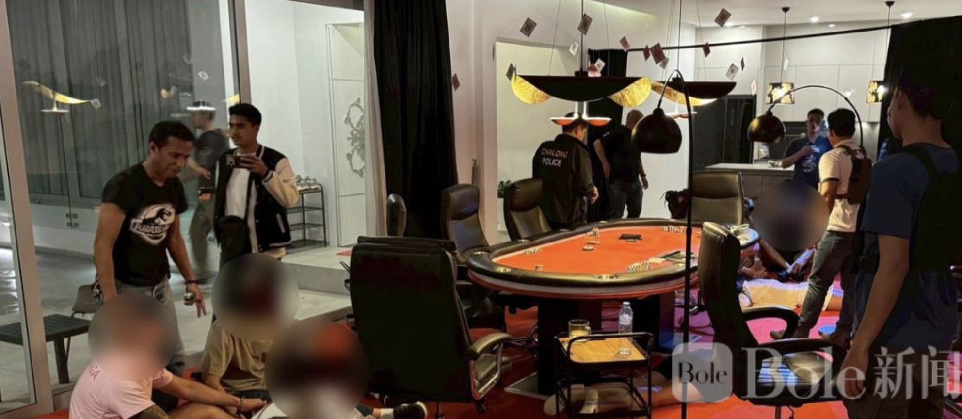 Bole新闻专讯:普吉岛查龙警署侦查组近日突击查获一处隐藏在豪华别墅内的扑克赌局,成功抓获9名外国赌客,并缴获大量赌资及相关器材。据悉,这起赌博活动主要通过社交媒体推广,专门针对外国人,且采用现金和加密货币下注。