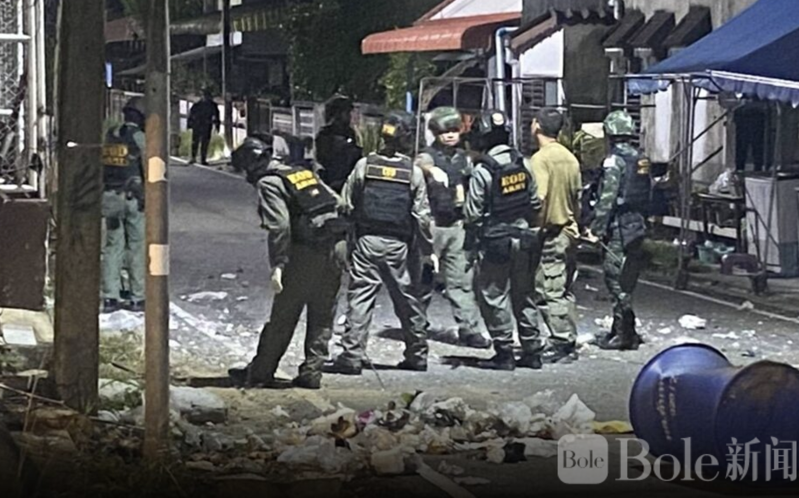 Bole新闻专讯:2月14日晚至15日凌晨,泰国南部边境地区突发一系列连环爆炸事件,陶公府益鄂县与拉艾县短短数小时内共发生七起爆炸,虽未造成人员伤亡,但多处民用设施受损,社会震动明显,警方已锁定两名嫌疑人展开全面追查。