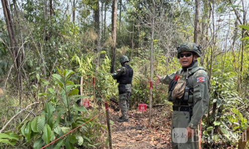据泰国海军发言人帕拉奇·拉塔纳查伊潘透露,地雷排查人道主义行动小组于2月14日在董里府查玛拉地区执行“Trat Pikhad Phrai”计划时,发现6枚全新PMN-2杀伤性地雷。此外,在邻近区域还发现3枚PMN-1地雷和1枚POMZ地雷,用于沿边境开发战术通道。