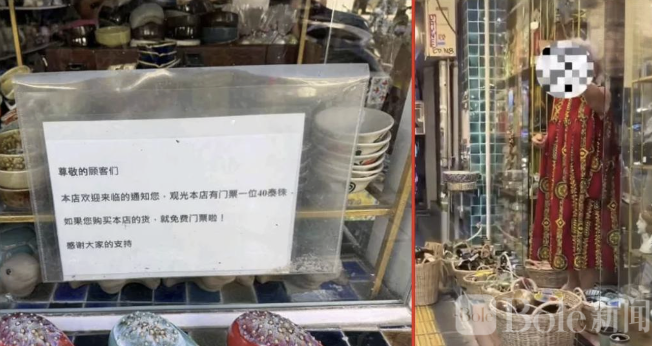 Bole新闻专讯:近日,一段显示普吉岛老城区一家商店向游客收取40泰铢(约合人民币9元)“入门费”的视频在中国社交媒体引发热议。视频中,当游客拒绝支付费用后,店内一名年长女性 reportedly 使用不当言语并做出被视为带有嘲讽和种族歧视意味的手势,激怒了游客并在网络上引发争议。