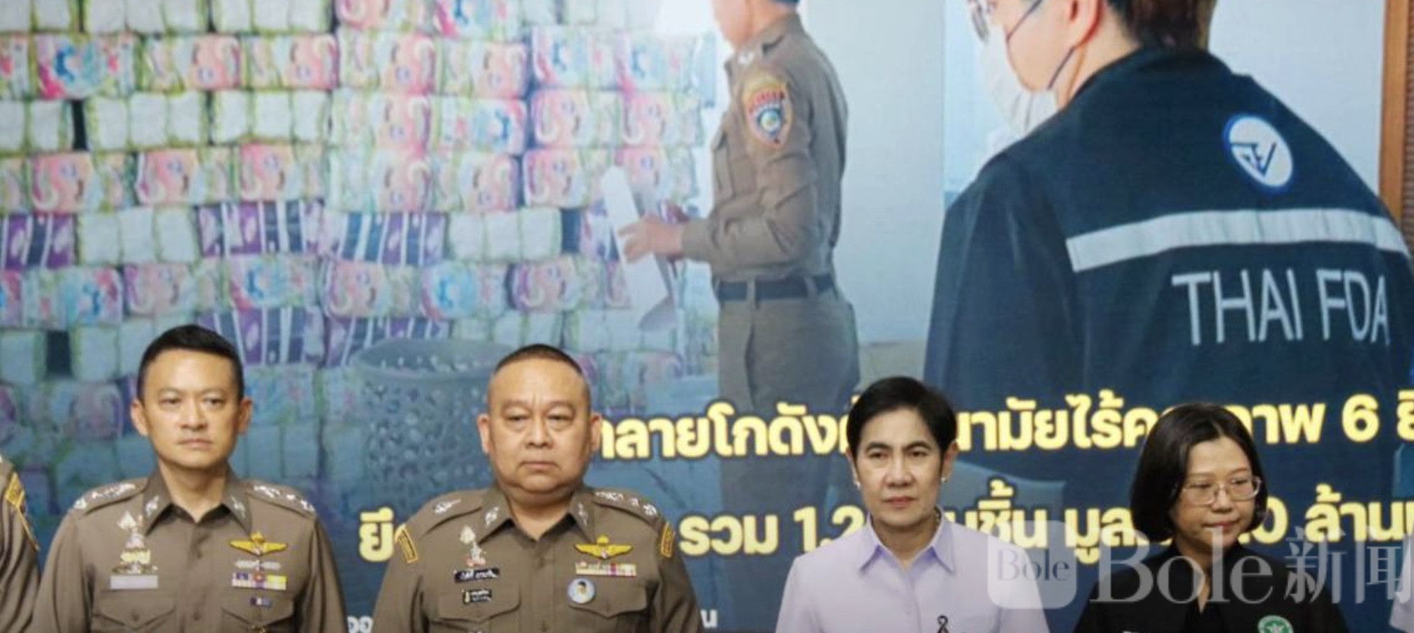 Bole新闻专讯:泰国警方联合食品药品监督管理部门(FDA)近日突击检查曼谷挽坤天及北榄府两处仓库,捣毁一个非法进口并在线销售假冒卫生巾的窝点,查获问题产品超过120万件,总值约2000万泰铢。有关部门提醒消费者,切勿因价格低廉而忽视安全风险,以免对身体造成伤害。
