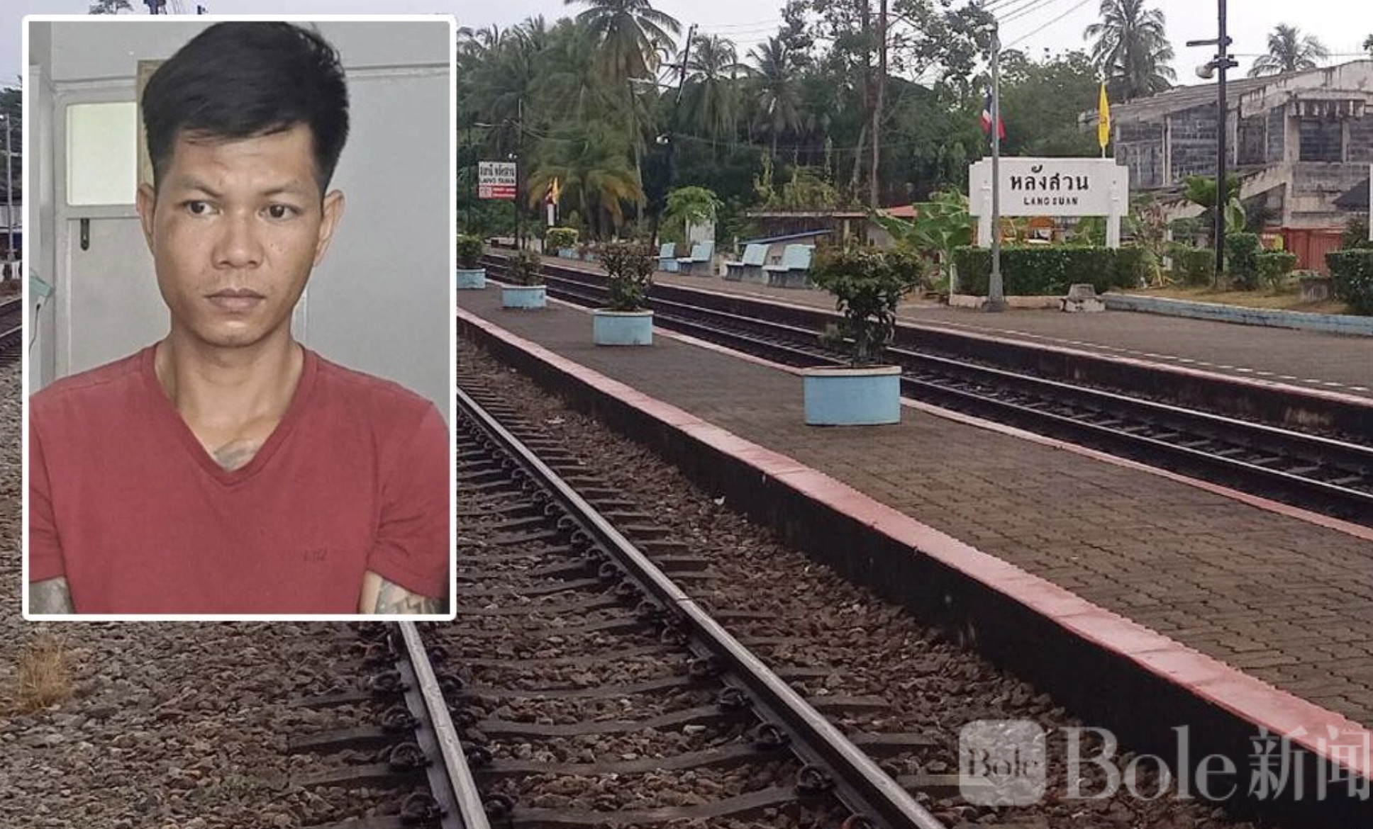就在列车行至春蓬府后园县(Lang Suan)火车站短暂停靠时,嫌疑人疑似抓住看管空隙,突然跃下车厢,在漆黑夜色中仓皇逃离。现场一度出现短暂混乱,列车上的执法人员迅速下车搜寻,但人影早已消失在铁轨旁的昏暗小路上。