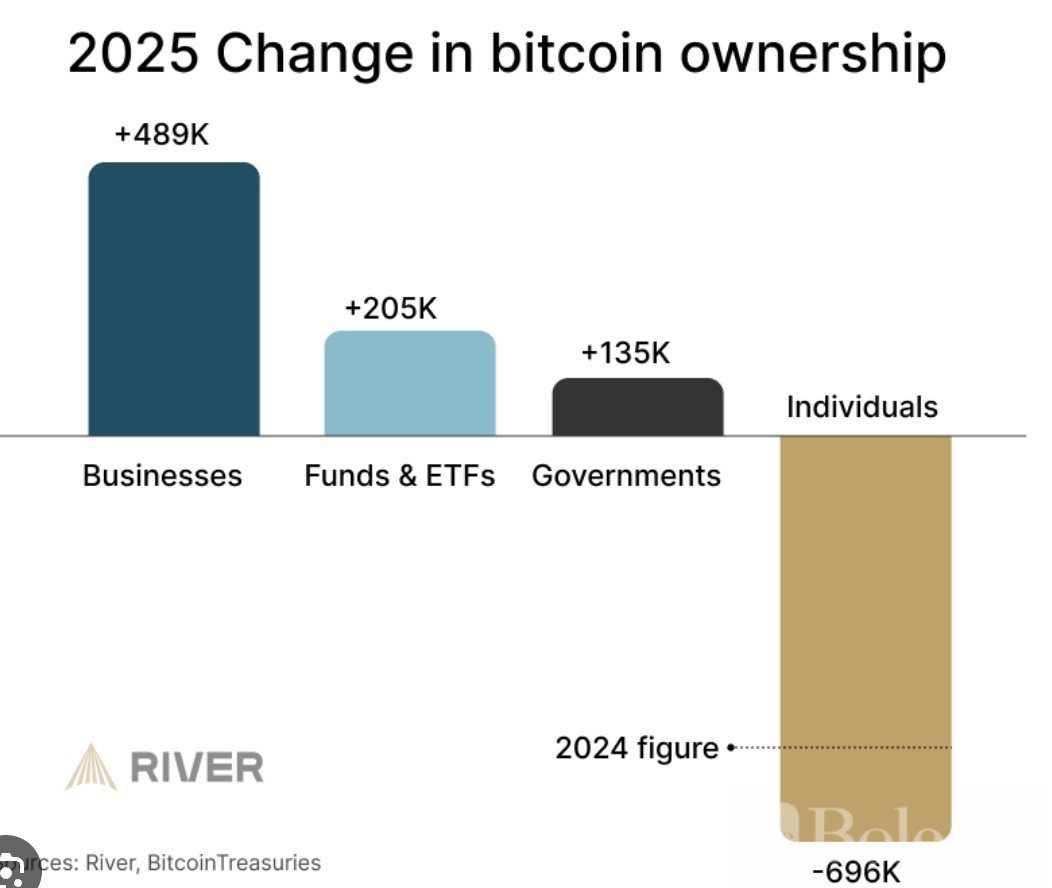 Bole新闻专讯:当市场的目光还停留在价格曲线上时,围绕Bitcoin的持仓版图,已经悄然换了模样。2025年全年数据显示,这枚诞生于去中心化理念之下的数字资产,正经历一场深层次的结构调整——从散户主导的高波动投机品,逐步转向机构与主权资金参与更深的战略配置资产。