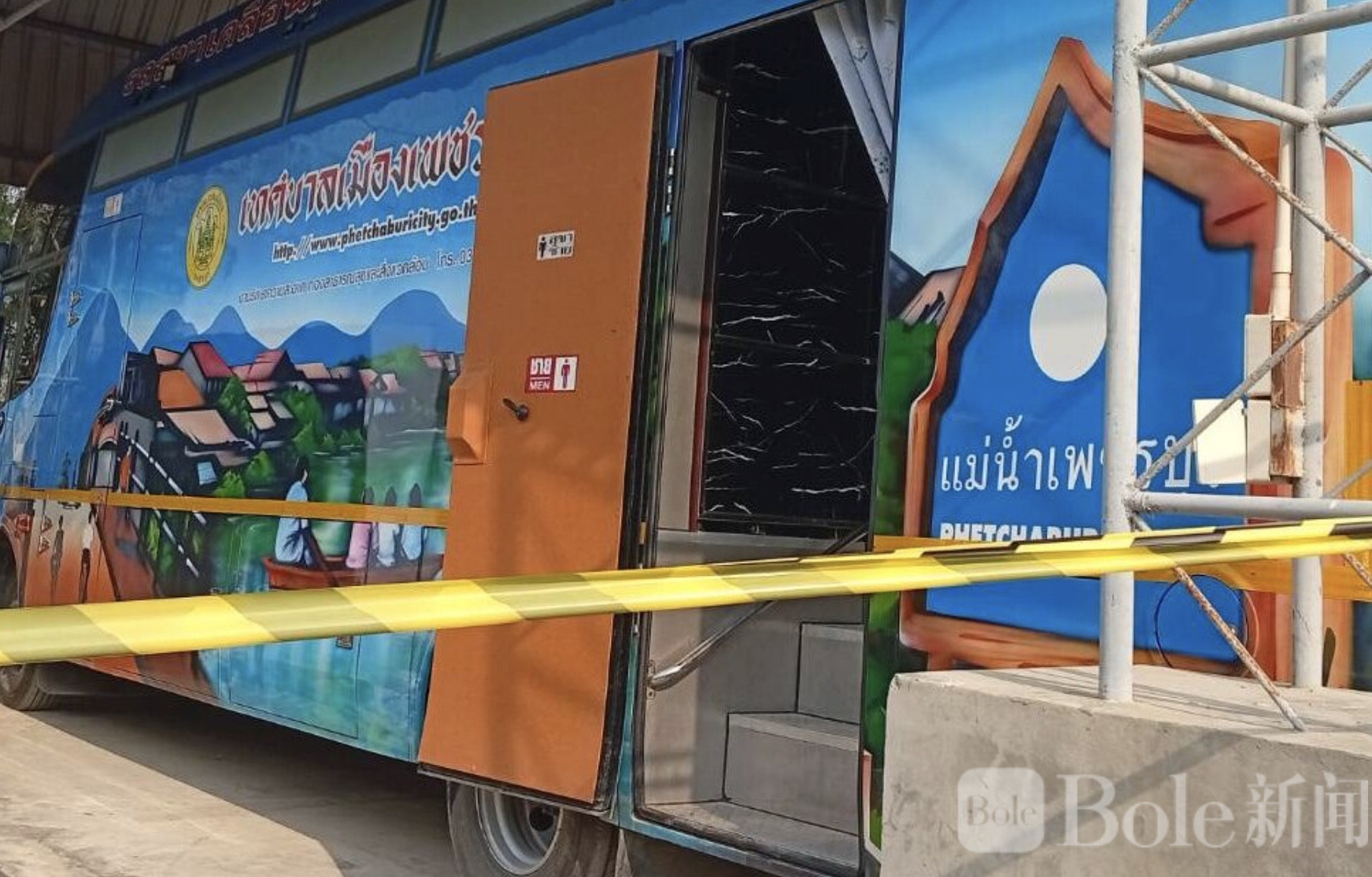 Bole新闻专讯:2月19日上午,泰国府城佩差布里(Phetchaburi)一辆移动厕所内,惊现一名彩票摊贩遗体。警方接报后赶往现场,与急救及当地志愿救援人员一起展开初步调查。死者姓氏为“延”,职业为销售政府彩票,尸体坐伏在马桶上,面朝下,已经明显腐败多日。现场还留有一板彩票、手机和少量现金。