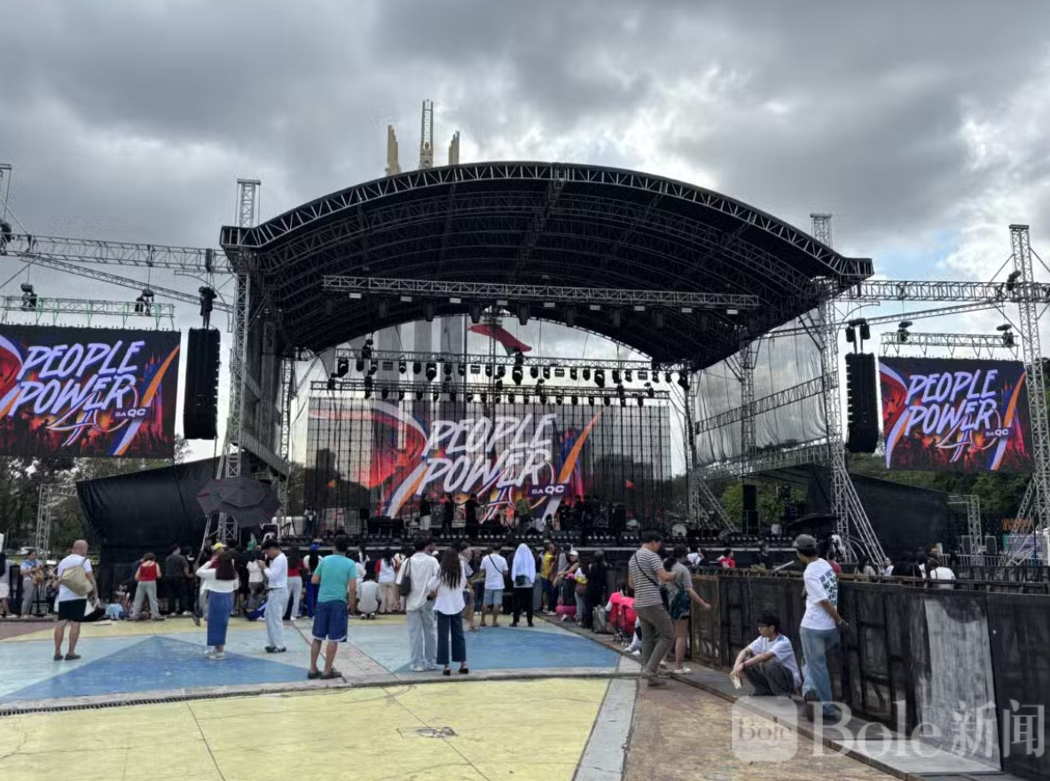 为确保安全,奎松市警察局官员、纪律工作小组成员以及菲律宾红十字会已提前到场待命,随着音响设备调试完毕,场地氛围逐渐热烈,期待在歌声与行动中纪念人民力量革命的精神。