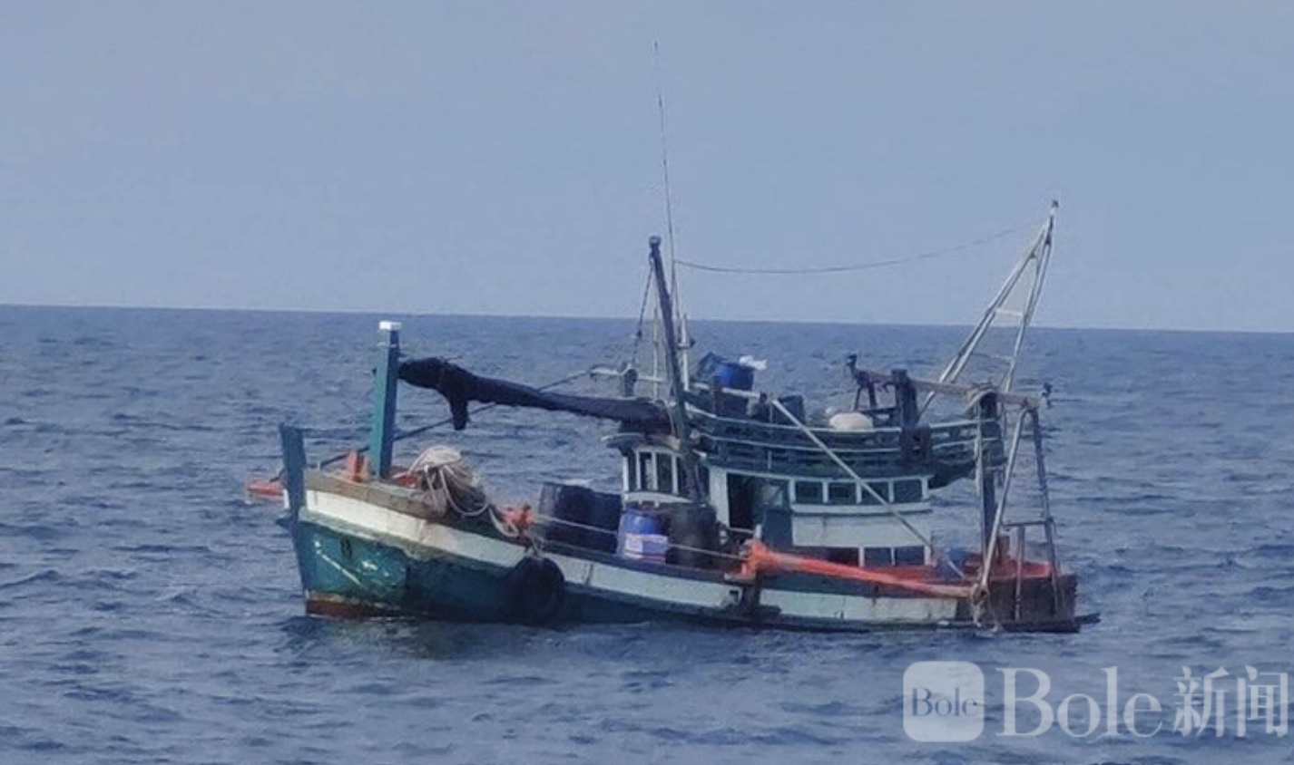 Bole新闻专讯:2月22日上午10时,泰国海军第一舰队在指挥官T.996号舰的带领下,于泰国专属经济区内(北纬11°31.51’,东经102°53.40’)成功截获一艘柬埔寨籍渔船,船上3名柬籍船员均无法提供合法身份文件,亦无按照法律申报船只进出记录。