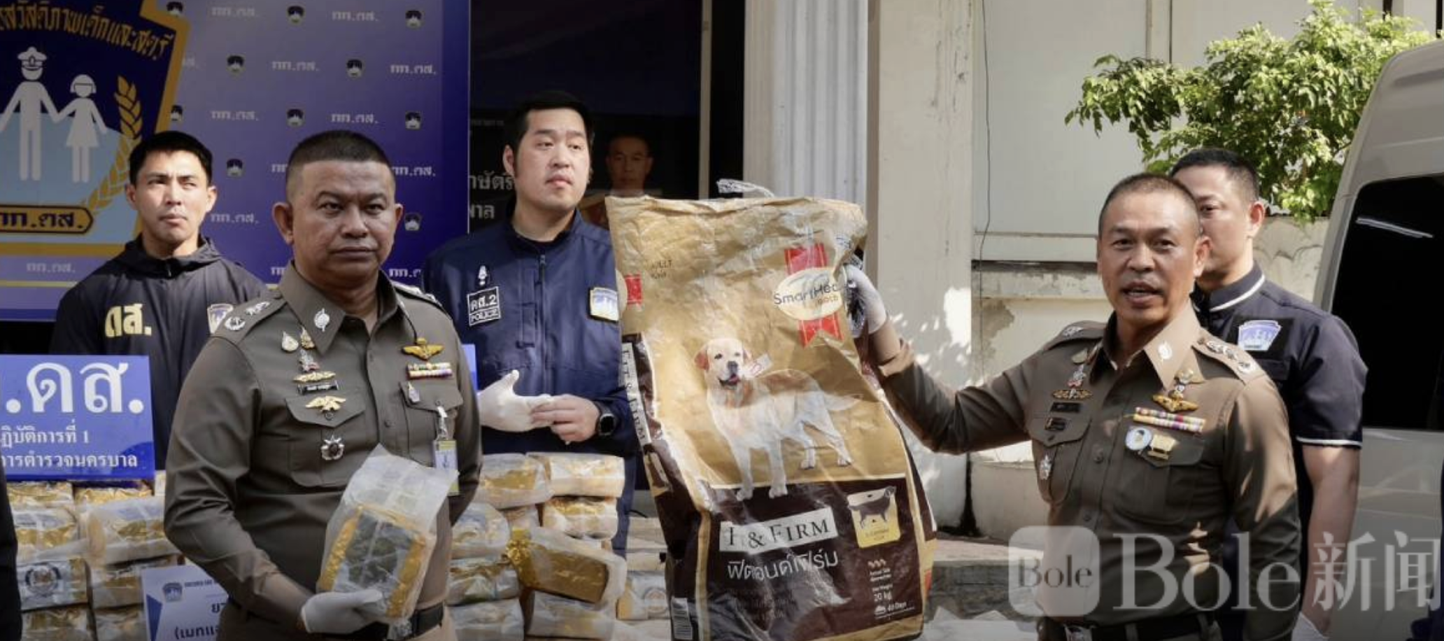 Bole新闻专讯:泰国警方日前在曼谷展开缉毒行动,成功逮捕两名涉嫌运毒的面包车司机,并当场查获重达448公斤的冰毒。这批毒品被狡猾地藏匿在猫粮和狗粮袋中,原计划运往曼谷后再转送泰国南部,所幸被警方及时截获。