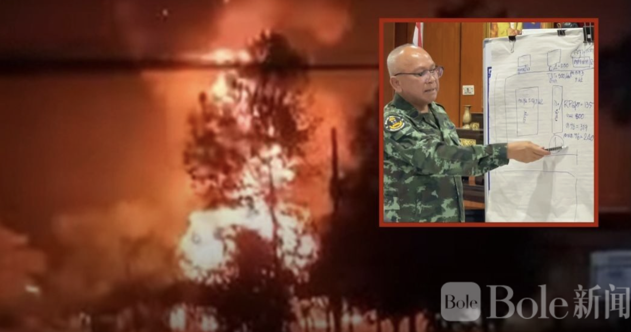 Bole新闻专讯:泰国素林府边境警察第21营弹药库于2月25日凌晨发生爆炸,现场一名警员受伤已送往威拉瓦特约廷营医院救治,其余警员及营区家属紧急撤离。事故造成RPG、步枪子弹及小口径子弹库严重损毁,火势一度蔓延至邻近的小型弹药储存区,当局已宣布周边为危险区域并持续高强度监控。