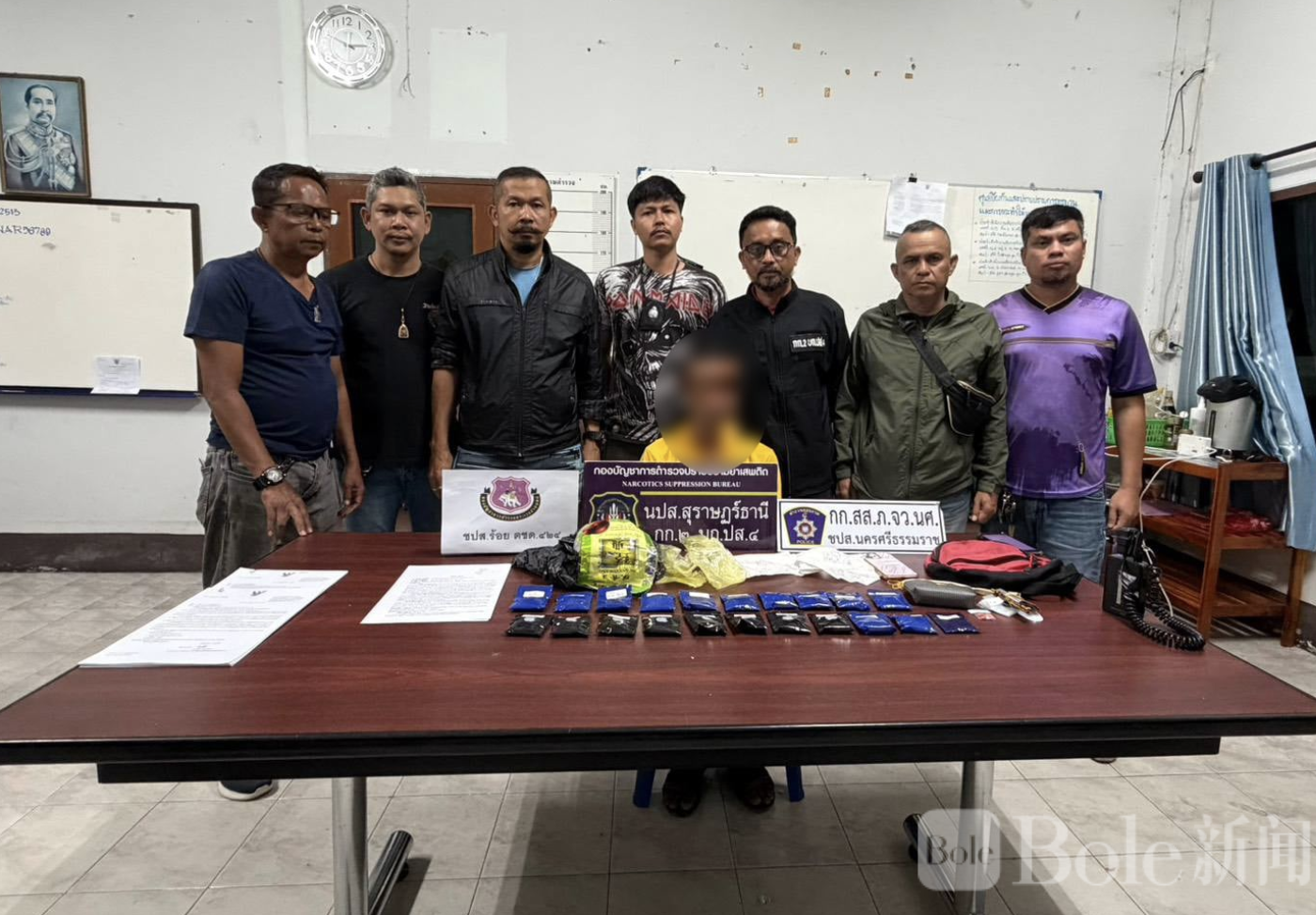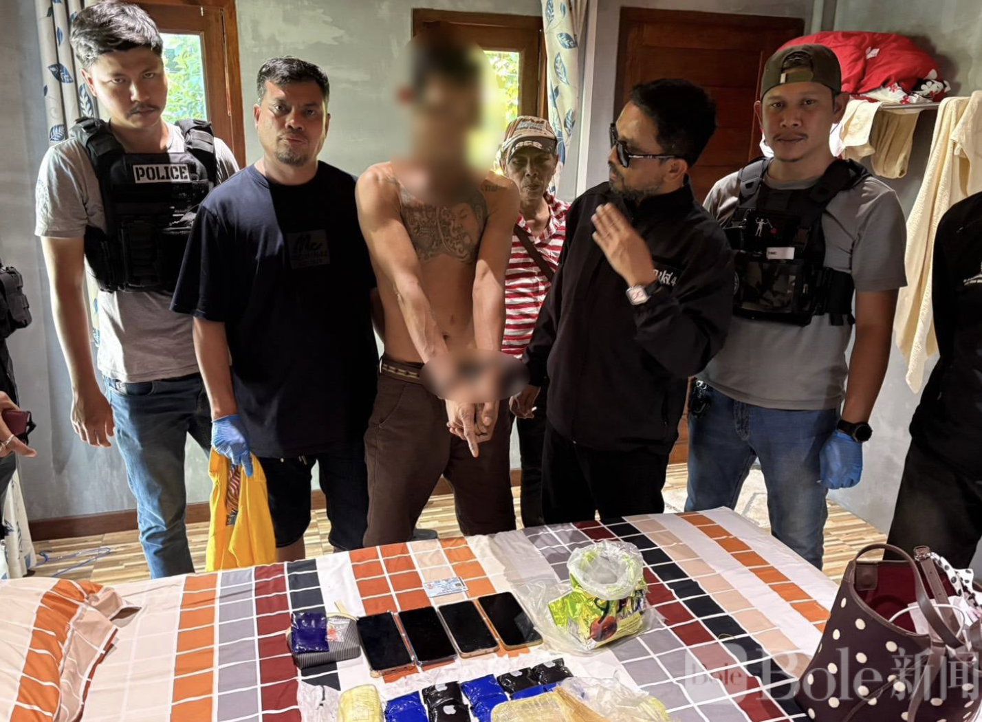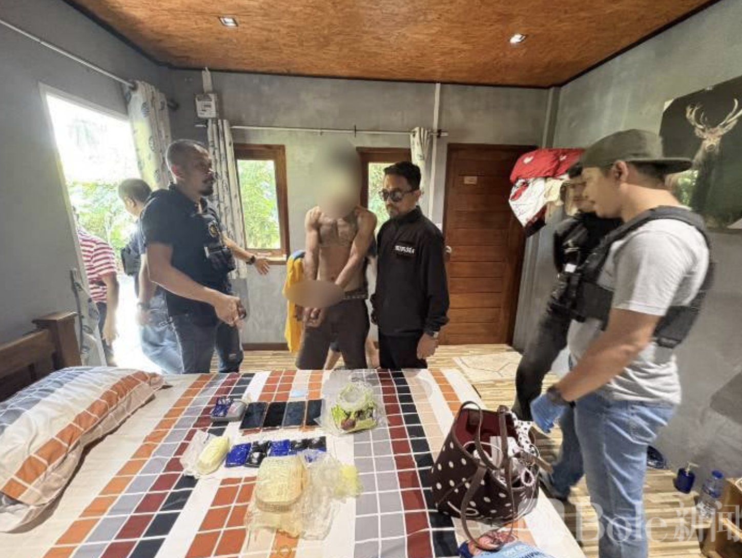 Bole新闻专讯:泰国南部清莱府近日发生重大毒品抓捕行动,当地警方在位于清莱府Sao Phao乡(塞奥帕奥乡)的某度假村成功抓获毒贩普拉苏特·邦里耶(Prasut Bangliab,45岁,外号“苏特·邦里耶”),现场缴获大量毒品及作案工具。