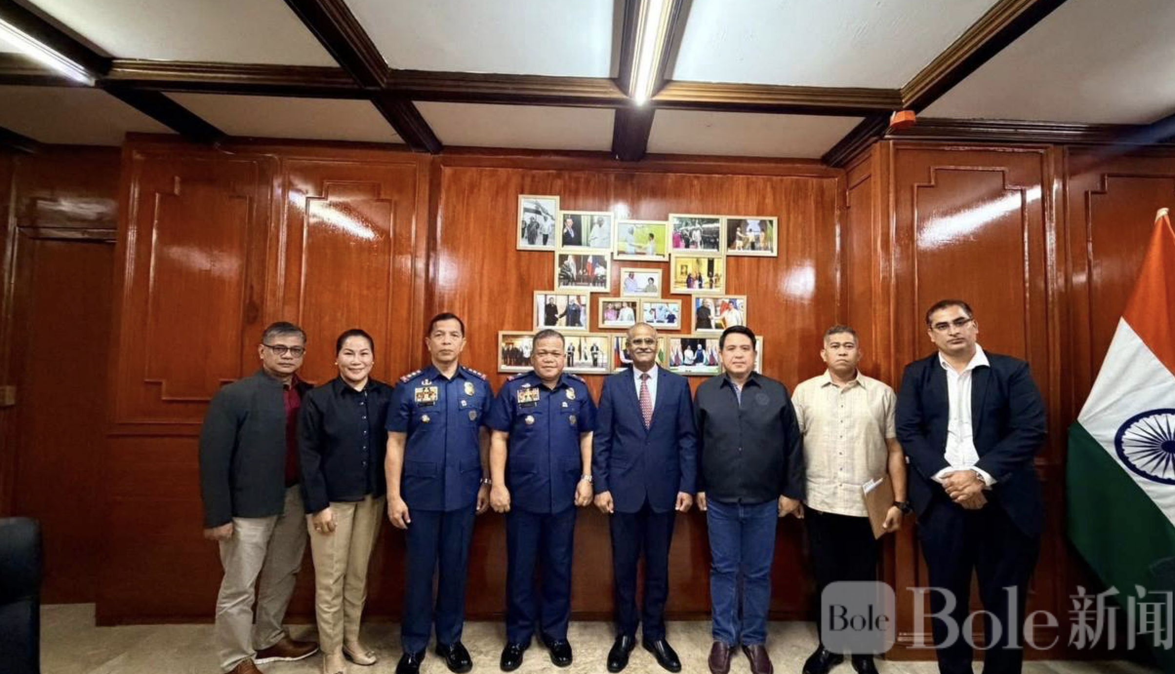 Bole新闻专讯:菲律宾国家警察反绑架组近日前往马卡蒂市达斯马里尼亚斯村的印度驻菲律宾大使馆进行礼节性访问及协调会晤,双方就涉及印度公民的绑架赎金(KFR)案件合作进行了深入交流。此次访问由菲律宾国家警察反绑架组主管吉塞里奥·C·坎西劳准将率队,大使馆方面由印度驻菲大使哈什·库马尔·贾因及领保事务负责人尼莱什·库马尔·赖参赞接待。