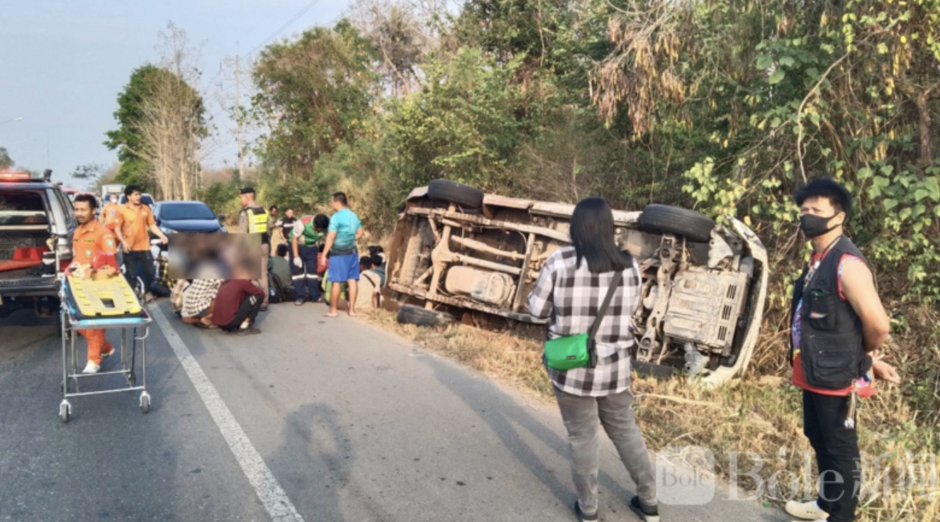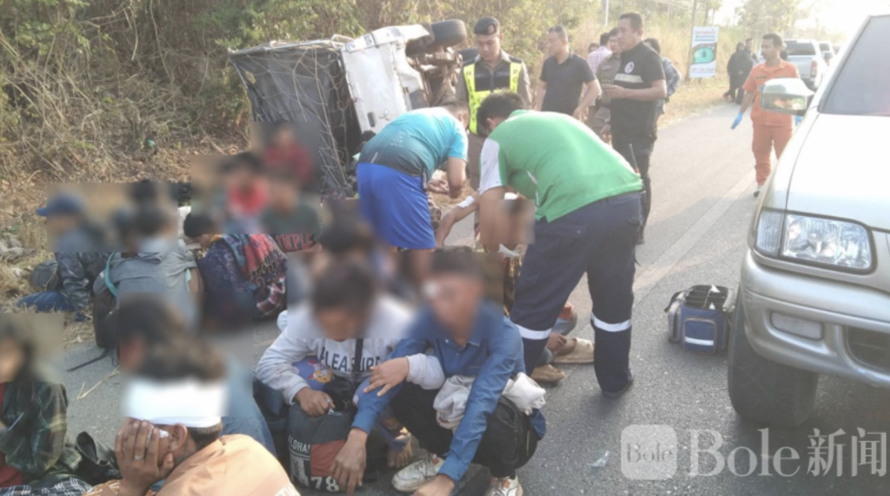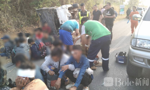 Bole新闻专讯:泰国北碧府今晨上演惊险一幕。一辆载有约50至60名非法入境劳工的皮卡车,在试图逃避高速公路警方拦截时高速狂飙,最终失控侧翻,造成约20人受伤,现场一度混乱不堪。