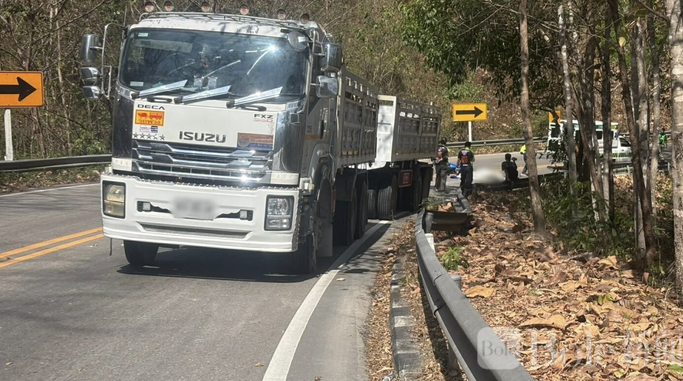 Bole新闻专讯:2月27日,泰国清迈省发生严重交通事故,一名44岁男子在驾驶摩托车超弯时失控,被大货车碾压当场死亡。事故发生在从霍德(Hod)通往美色良(Mae Sariang)路段,靠近迈杰姆(Mae Chaem)入口,距离霍德约25公里。