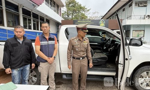 Bole新闻专讯:乌汶府警方近日破获一起网络“钓车”抢劫案件,两名嫌犯被当场抓获,一辆白色丰田皮卡及现金19万泰铢成功追回,第三名嫌犯仍在追缉中。