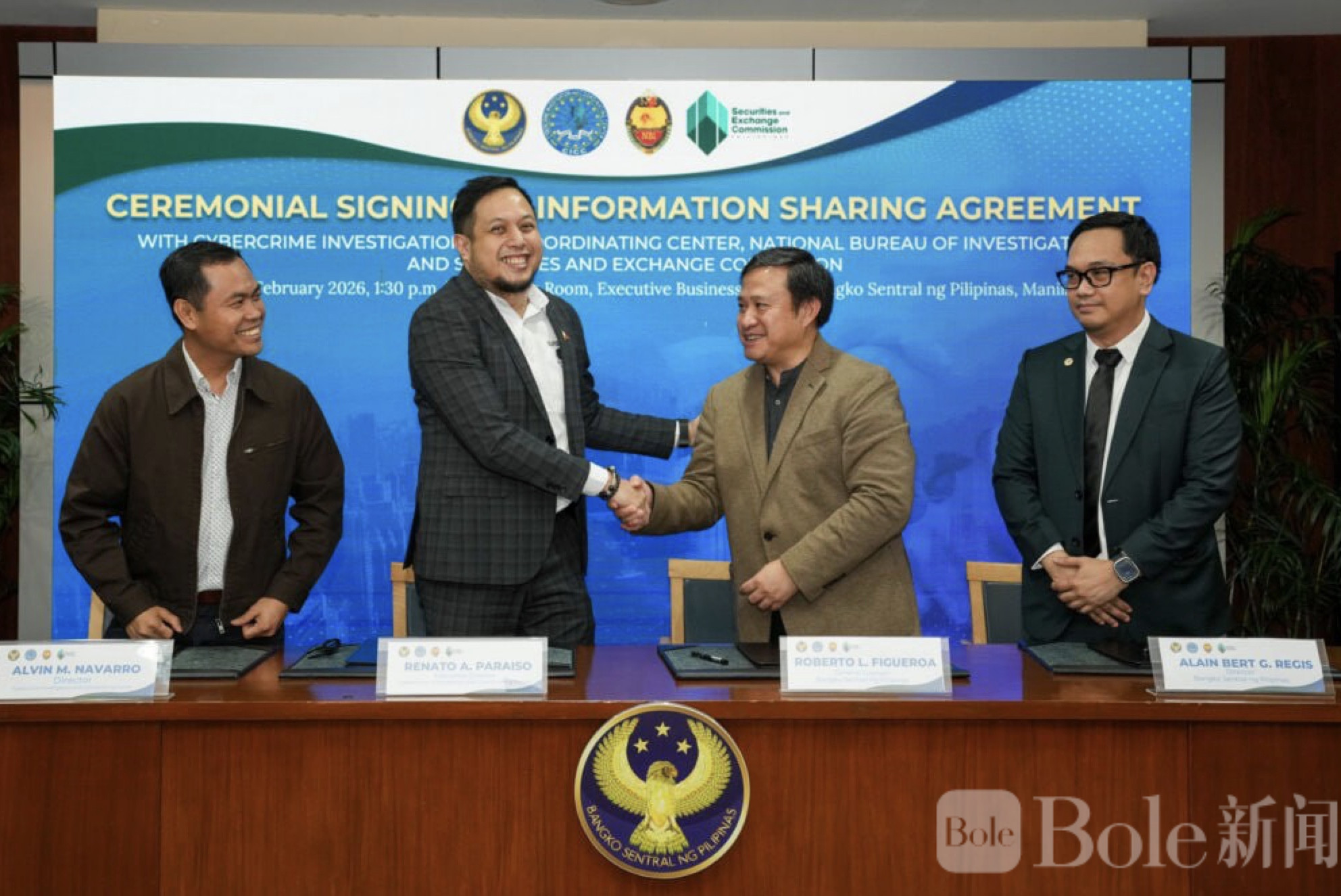 Bole新闻专讯:菲律宾中央银行(BSP)于2月25日与国家调查局(NBI)、反诈骗调查中心(CICC)及证券交易委员会(SEC)签署了一项重要的数据共享协议,旨在提升跨机构协作,打击金融账户诈骗案件。