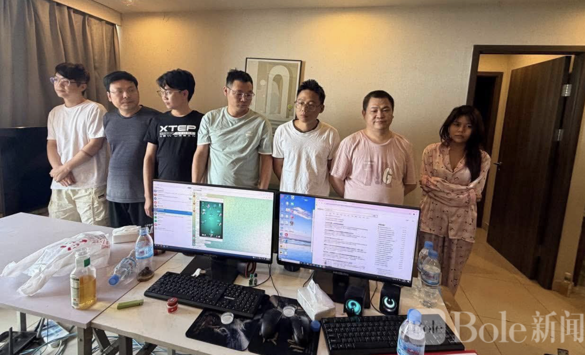 Bole新闻专讯:柬埔寨首都金边持续加码打击网络诈骗行动。3月1日,当地联合特遣队联合查姆卡蒙县统一指挥部,对一处涉嫌从事非法网络赌博及电诈活动的公寓展开突击搜查,当场逮捕7名中国籍男女。