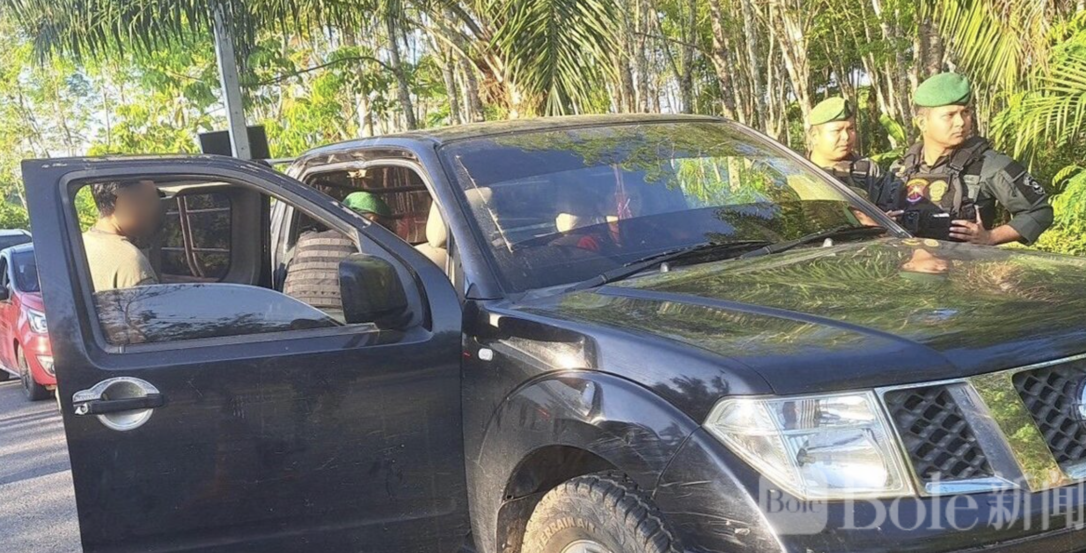 Bole新闻专讯:泰国苏叻他尼省特勤部门近日在一处检查站成功抓获一名持枪男子。该男子单独驾驶一辆黑色尼桑皮卡,车内竟藏有两把枪——一把9毫米西格绍尔半自动手枪和一把.22口径单发步枪,及相应弹药和弹匣。