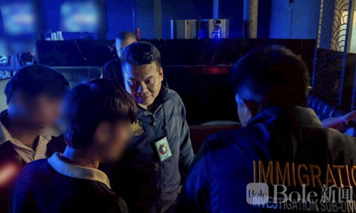 Bole新闻专讯:泰国移民局联合劳工部门近日在苏提桑–拉差威地区展开大规模清查行动,重点针对非法雇佣外国劳工的酒吧和餐厅进行突袭。此次行动共抓获9名非法劳工,其中包括一名韩籍男子,涉嫌在当地酒吧担任陪酒生(Bar Host)非法工作。警方表示,将依法追究相关责任,并继续对非法劳工展开高强度清查。